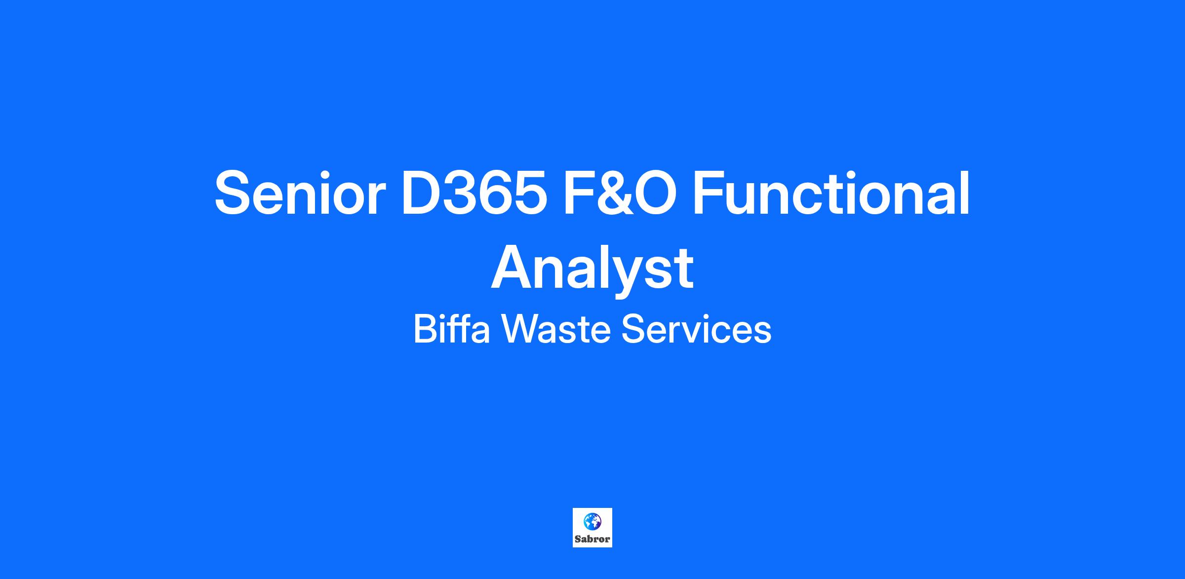 A quick look at the role The Senior D365 F&O Functional Analyst is responsible for making complex configuration changes to business-critical systems, reporting into the Configuration Manager. They work closely with the Product Team, business stakeholders, functional consultants, developers and testers to ensure the systems meet the business needs and follow the best practices. Your core responsibilities Carry out the complex configuration of system enhancements, extensions, and integrations using the industry standard tools. Configuring changes within Finance and Operations Coordinate the testing and release management of the configuration changes, working with the test and release teams Work with the Configuration Manager to plan the resource and training needs for the team. Provide advice and guidance to users where necessary. Resolve incidents and system issues via Biffa Service Now portal Provide input, advice and review for any application changes where required to ensure the proposed technical application changes meet the business requirements. Keep up to date on software releases by software providers, advising the business on which modules to take and how the new releases will impact Biffa processes Liaise and agree complex configuration changes with the development team, including code reviews and impact analysis of changes. Work closely the Functional Consultants in developing Functional & Technical Design documents and implanting the required changes in the system as part of knowledge transfer. Maintaining and updating security roles in Finance and Operations Our essential requirements Bachelor’s degree in computer science, information technology, system analysis or a related study, or equivalent experience Experience in configuring and managing Enterprise applications and integrations. Specifically, Microsoft D365 Finance and Operations Experience adhering to and enforcing the defined change control procedures. Good grasp of development lifecycles, including Agile and Waterfall . Biffa – we’re changing the way people think about waste At Biffa, we love working with waste. Whether we’re turning it into sustainable power, finding new ways to recycle it or simply keeping it off the streets, we believe every day is an opportunity to improve the lives of millions. It’s a view that’s shared by our 11,000+ people around the country, who trust us to provide them with a career that’s always rewarding, often challenging, but never dull. We believe different ideas, perspective and backgrounds are key to developing a creative and effective working environment which is why you’ll find us championing diversity and equality at every turn.