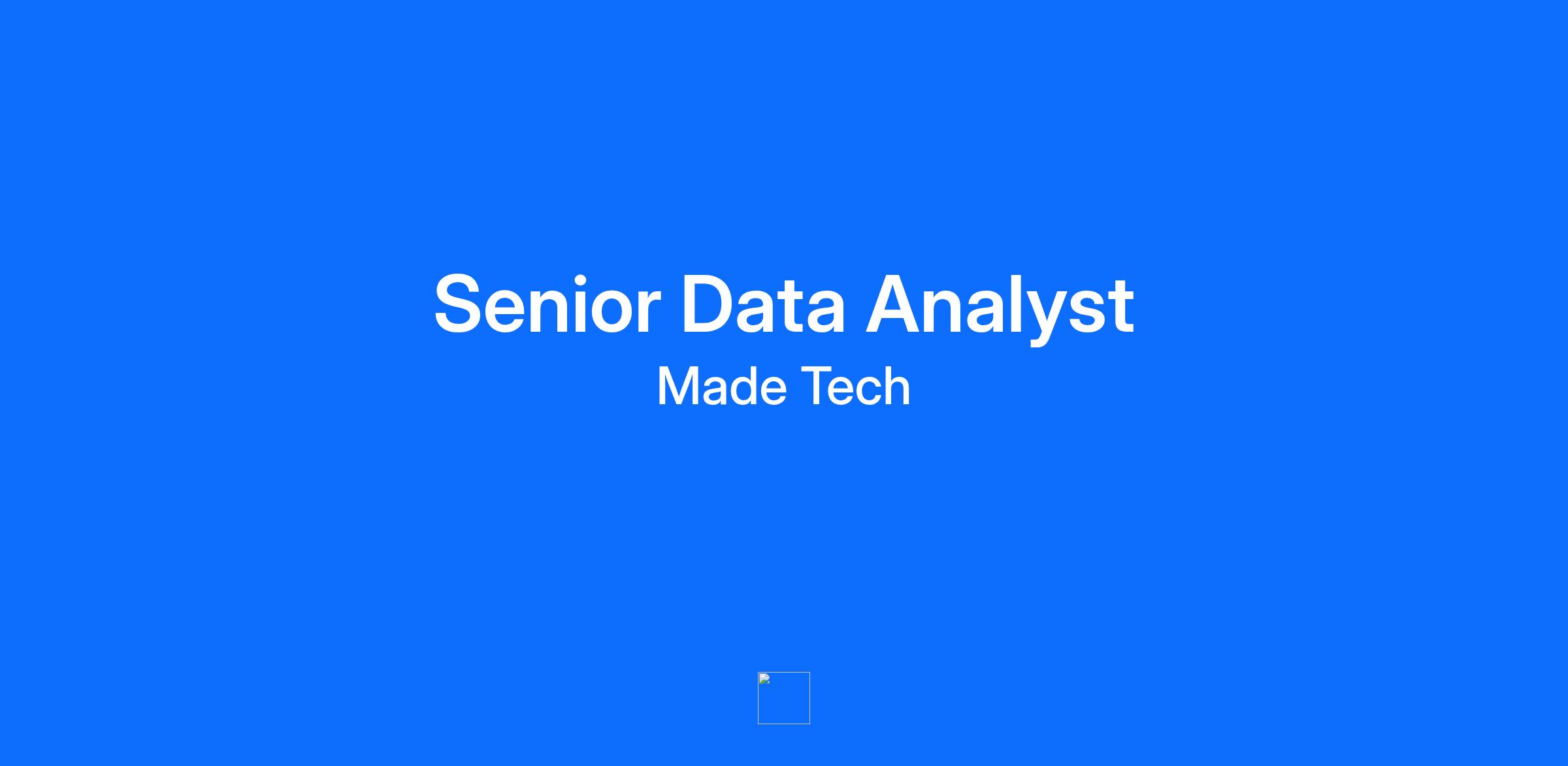 Senior Data Analyst Department: Technology Employment Type: Permanent Location: Any UK Office Hub (Bristol / London / Manchester / Swansea) Compensation: £49,500 - £65,000 / year Description Made Tech wants to positively impact the country's future by using technology to improve society, for everyone. We want to empower the public sector to deliver and continuously improve digital services that are user-centric, data-driven and freed from legacy technology. A key component of this is developing modern data systems and platforms that drive informed decision-making for our clients. You will also work closely with clients to help shape their data strategy As a Senior Data Analyst, you may play one or more roles according to our clients' needs. The role is very hands-on and you'll support as a senior contributor role for a project, focusing on: Data analysis and reporting: Conducting in-depth data analysis, generating reports, and providing actionable insights for client projects. Data and BI visualisation: Producing BI dashboards using industry-standard tools - Power BI, Tableau, Quicksight etc Client interaction: Collaborating with clients to understand their needs, translating these into analytical solutions, and presenting findings in a clear, actionable manner. Mentoring junior analysts, leading data-focused projects, and setting best practices in data analysis You’ll need to have a drive to deliver outcomes for users. You’ll make sure that the wider context of a delivery is considered and maintain alignment between the operational and analytical aspects of the engineering solution. Technical Skills Application of analytical techniques: Proficiency in applying various analytical methods such as statistical analysis, data mining, and qualitative analysis. Ability to select and apply appropriate techniques based on the context and research data. Synthesis of research data: Experience in synthesising research data to present actionable insights and solutions. Ability to articulate the impact of their analysis on decision-making and problem-solving. Engagement with sceptical colleagues: Effective communication and persuasion skills to engage and gain buy-in from sceptical colleagues. Ability to foster collaboration and address concerns to ensure adherence to best practices. Advisory and critique skills: Capability to advise on the choice and application of analytical techniques and critique colleagues' findings to ensure high standards in data analysis. Understanding of data sources and storage: Knowledge of various data sources, data organisation, and storage practices. Commitment to maintaining data integrity and accessibility. Advocacy for data governance: Experience in advocating for data governance standards and influencing team adherence to data quality practices. Continuous improvement: Ability to communicate and implement continuous improvements in data management practices through documentation, training, and regular team engagement. Toolset management: Proficiency in defining and supporting common toolsets for data management, ensuring efficiency and seamless integration. Automation of data management: Experience in automating data management activities to streamline processes and increase accuracy. (desirable) Compliance with data governance policies: Understanding and ensuring compliance with data governance policies, maintaining data security and ethical standards. Data modelling expertise: Proficient in conceptual, logical, and physical data modelling. Ability to adhere to data modelling standards and best practices. Data cleansing and standardisation: Experience in resolving data quality issues and ensuring data accuracy through cleansing and standardisation techniques. Use of data integration tools: Skilled in using ETL tools for data integration and storage. Ensures data interoperability with other datasets. Collaboration with data professionals: Experience collaborating with other data professionals to improve modelling and integration standards and patterns. Interpretation of requirements: Ability to interpret data visualisation requirements and create meaningful, visually appealing representations tailored to the audience. Proficiency in visualisation tools: Experience with tools such as Tableau, Power BI, and Python libraries like Matplotlib and Seaborn. Knowledge of selecting appropriate visualisation types. Application of visualisation standards: Application of design principles to create clear, accurate, and accessible visualisations. Awareness of accessibility considerations. Mentorship in visualisation: Experience in reviewing and advising junior members to improve the quality and efficiency of data visualisations. Data quality assurance: Experience in implementing processes for data quality assessment and improvement, including data profiling, cleansing, and standardisation. Data validation and linkage: Ability to perform data validation checks and integrate data from various sources to ensure consistency and accuracy. Data cleansing and preparation: Proficiency in defining data cleansing processes and preparing data for analysis by handling missing values, outliers, and duplicates. Communication of data limitations: Skilled in articulating data constraints and limitations to stakeholders, providing context for informed decision-making. Peer review and quality control: Experience in conducting peer reviews to validate data outputs, ensuring high standards of accuracy and reliability. Knowledge of statistical methodologies: Proficient in various statistical methods, such as hypothesis testing, regression analysis, clustering, and time series analysis. Ability to select appropriate techniques based on project requirements. Data analysis and interpretation: Experience in using statistical software or programming languages to perform data analysis and generate insights. Skilled in communicating findings to technical and non-technical stakeholders. Application of