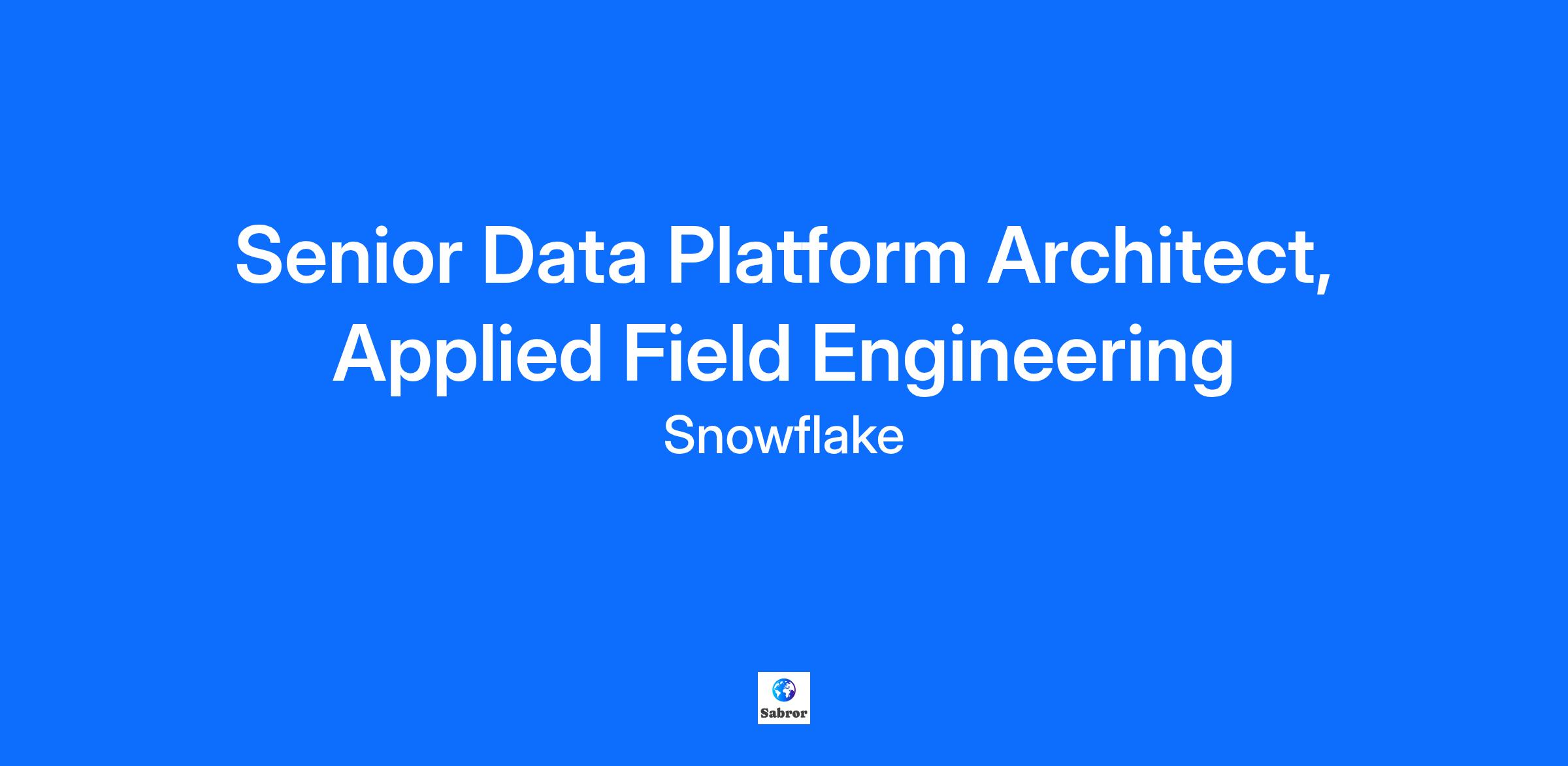 Where Data Does More. Join the Snowflake team. Our Sales Engineering organization is seeking a Data Platform Architect to join our Applied Field Engineering team who can provide leadership in working with both technical and business executives in the design and architecture of the Snowflake Cloud Data Platform as a critical component of their enterprise data architecture and overall ecosystem. In this role you will work directly with the sales team and channel partners to understand the needs of our customers, strategize on how to navigate winning sales cycles, provide compelling value-based demonstrations, support enterprise Proof of Concepts, and ultimately close business. You will leverage your expertise, best practices and reference architectures highlighting Snowflake’s Cloud Data Platform capabilities across Data Warehouse, Data Lake, and Data Engineering workloads. You are equally comfortable in both a business and technical context, interacting with executives and talking shop with technical audiences. IN THIS ROLE YOU WILL GET TO: Apply your multi-cloud data architecture expertise while presenting Snowflake technology and vision to executives and technical contributors at strategic prospects, customers, and partners Work hands-on with prospects and customers to demonstrate and communicate the value of Snowflake technology throughout the sales cycle, from demo to proof of concept to design and implementation Immerse yourself in the ever-evolving industry, maintaining a deep understanding of competitive and complementary technologies and vendors and how to position Snowflake in relation to them Collaborate with Product Management, Engineering, and Marketing to continuously improve Snowflake’s products and marketing ON DAY ONE, WE WILL EXPECT YOU TO HAVE: 5+ years of architecture and data engineering experience within the Enterprise Data space 5+ years experience within a pre-sales environment Outstanding presenting skills to both technical and executive audiences, whether impromptu on a whiteboard or using presentations and demos. Broad range of experience within large-scale Database and/or Data Warehouse technology, ETL, analytics and cloud technologies. For example, Data Lake, Data Mesh, Data Fabric Hands on Development experience with technologies such as SQL, Python, Pandas, Spark, PySpark, Hadoop, Hive and any other Big data technologies Ability to connect a customer’s specific business problems and Snowflake’s solutions Ability to do deep discovery of customer’s architecture framework and connect those with Snowflake Data Architecture. Must have some prior knowledge of Data Engineering tools for ingestion, transformation and curation Familiarity with real-time or near real time use cases (ex. CDC) and technologies (ex. Kafka, Flink) and deep understanding of integration services and tools for building ETL and ELT data pipelines and its orchestration technologies such as Matillion, Fivetran, Airflow, Informatica, etc.. Strong architectural expertise in data engineering to confidently present and demo to business executives and technical audiences, and effectively handle any impromptu questions Bachelor’s Degree required, Masters Degree in computer science, engineering, mathematics or related fields, or equivalent experience preferred Every Snowflake employee is expected to follow the company’s confidentiality and security standards for handling sensitive data. Snowflake employees must abide by the company’s data security plan as an essential part of their duties. It is every employee's duty to keep customer information secure and confidential. Snowflake is growing fast, and we’re scaling our team to help enable and accelerate our growth. We are looking for people who share our values, challenge ordinary thinking, and push the pace of innovation while building a future for themselves and Snowflake. How do you want to make your impact? For jobs located in the United States, please visit the job posting on the Snowflake Careers Site for salary and benefits information: careers.snowflake.com