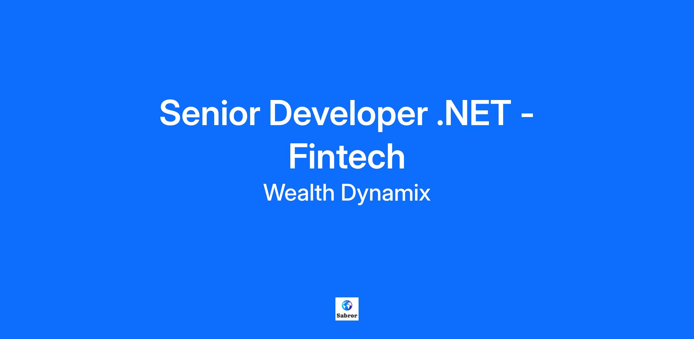 Senior Developer .NET - Fintech – Remote