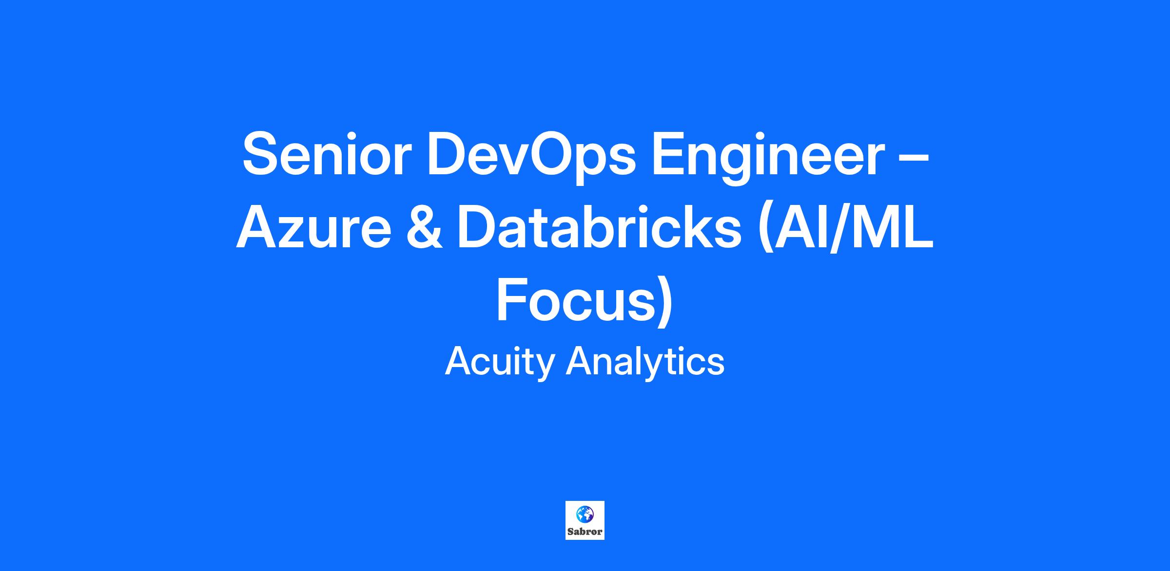 The creative mind behind every project. Put your skills to the test to build solutions that continue to shape the world we live in. About Us Ascent has recently been acquired by Acuity Analytics. This is both a significant milestone for us and a tremendous opportunity for you. Acuity Analytics is a business with a strong global reputation, an impressive client base and ambitious growth plans. We delivers deep insights and domain-led digital transformation to high-growth and heavily regulated organisations. To our customers, we bring a partnership that provides the talent, technology and capability to enhance performance and operational efficiency. Please note that this role is currently available for European residents. About the role We are seeking a Senior DevOps Engineer with expertise in Azure Databricks and cloud-native AI/ML operations. You will be a key contributor to a next-generation AI platform built on Azure Databricks, enabling data scientists and engineers to train, deploy, monitor, and govern ML and GenAI models efficiently. This role blends MLOps best practices, cloud-native architecture, and Databricks expertise to ensure AI models are production-ready, scalable, and compliant with enterprise standards. Key Responsibilities Design, implement, and optimize ML/AI pipelines for training, deployment, monitoring, and governance. Leverage Azure Databricks capabilities including MLFlow for experiment tracking and Unity Catalog for data governance. Build and maintain CI/CD pipelines as well as automated ModelOps workflows for AI/ML applications. Ensure data architecture supports schema evolution, governance, and compliance requirements. Operate in a cloud-native Azure environment to deliver robust and scalable ML solutions. Required Skills & Experience Proven experience with Azure Databricks, including MLFlow and Unity Catalog. Strong background in DevOps for ML/AI, including CI/CD and pipeline automation. Solid understanding of data architecture, schema evolution, and governance principles. Experience working in Microsoft Azure or similar cloud environments. Hands-on experience with Infrastructure as Code (IaC) using Terraform. Nice to Have High-level understanding of machine learning and generative AI concepts and workflows. Solid knowledge of containerization (Docker) and orchestration (Kubernetes). Experience in Python software development and scripting. Hands-on experience with TensorFlow, PyTorch, and Scikit-learn in a Databricks environment. Why join us? People are at the Heart of our Business. By investing in people, we achieve exceptional results for our clients and create new opportunities for our teams to thrive. Check out this page for more details. If you have any questions contact our Talent Acquisition team on ta.admin@acuityanalytics. For more details about life at Ascent, check out our Life Page here. Ascent is now an Acuity Analytics. Read here.