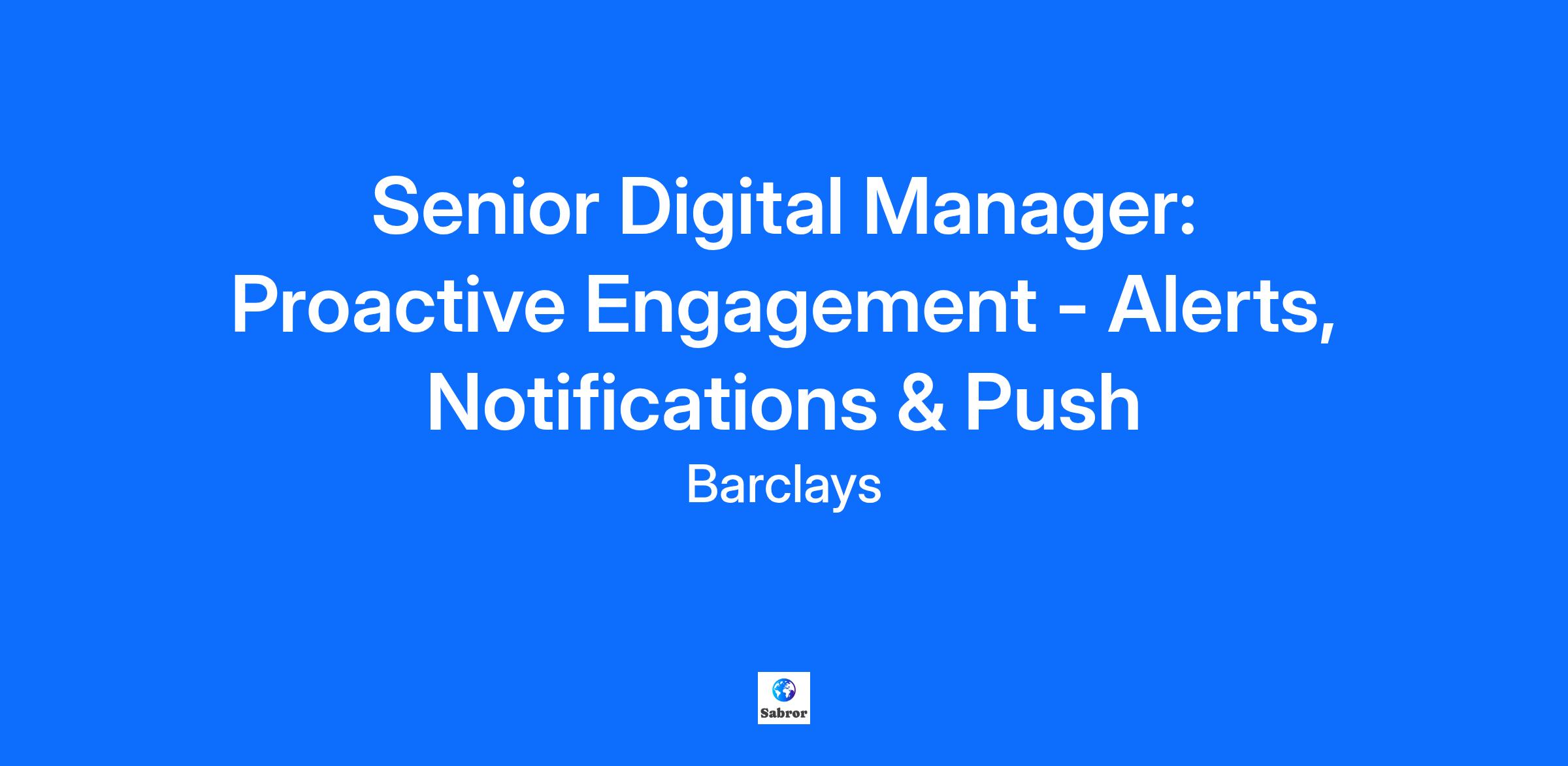 Job Description Purpose of the role To manage and drive the innovation strategy to meet customer needs and ensure the bank's long-term success and competitive edge. Accountabilities Execution of market research to understand customer needs, pain points, and emerging trends to support the analysis of profitability, market size and positioning for new products compared to existing offerings, and to identify opportunities for diversification to gain a competitive advantage. Collaboration with stakeholders across departments and teams including marketing, sales, technology, engineers, designers etc to generate innovative and feasible product ideas and prototypes for testing aligned with customer needs and strategic goals. Development of concepts and specifications which define features, functionalities, target market, user interface, technical specifications and potential revenue models of new products. Evaluation of the technical feasibility, legal compliance, and potential risks associated with the development and launch of the new product. Monitoring of market trends and analysis feedback from internal employees and target customers through prototypes, user testing sessions, and beta programs to identify areas for improvement to refine the product before launch. Management of comprehensive launch plans and technical deployments for products that establish rollout timelines, marketing strategies, training initiatives and communication channels to promote the launch new products effectively. Monitoring of key metrics such as adoption rates, usage patterns, customer satisfaction, and revenue generation to assess the product's performance against set goals. Vice President Expectations To contribute or set strategy, drive requirements and make recommendations for change. Plan resources, budgets, and policies; manage and maintain policies/ processes; deliver continuous improvements and escalate breaches of policies/procedures.. If managing a team, they define jobs and responsibilities, planning for the department’s future needs and operations, counselling employees on performance and contributing to employee pay decisions/changes. They may also lead a number of specialists to influence the operations of a department, in alignment with strategic as well as tactical priorities, while balancing short and long term goals and ensuring that budgets and schedules meet corporate requirements.. If the position has leadership responsibilities, People Leaders are expected to demonstrate a clear set of leadership behaviours to create an environment for colleagues to thrive and deliver to a consistently excellent standard. The four LEAD behaviours are: L – Listen and be authentic, E – Energise and inspire, A – Align across the enterprise, D – Develop others.. OR for an individual contributor, they will be a subject matter expert within own discipline and will guide technical direction. They will lead collaborative, multi-year assignments and guide team members through structured assignments, identify the need for the inclusion of other areas of specialisation to complete assignments. They will train, guide and coach less experienced specialists and provide information affecting long term profits, organisational risks and strategic decisions.. Advise key stakeholders, including functional leadership teams and senior management on functional and cross functional areas of impact and alignment. Manage and mitigate risks through assessment, in support of the control and governance agenda. Demonstrate leadership and accountability for managing risk and strengthening controls in relation to the work your team does. Demonstrate comprehensive understanding of the organisation functions to contribute to achieving the goals of the business. Collaborate with other areas of work, for business aligned support areas to keep up to speed with business activity and the business strategies. Create solutions based on sophisticated analytical thought comparing and selecting complex alternatives. In-depth analysis with interpretative thinking will be required to define problems and develop innovative solutions. Adopt and include the outcomes of extensive research in problem solving processes. Seek out, build and maintain trusting relationships and partnerships with internal and external stakeholders in order to accomplish key business objectives, using influencing and negotiating skills to achieve outcomes. All colleagues will be expected to demonstrate the Barclays Values of Respect, Integrity, Service, Excellence and Stewardship – our moral compass, helping us do what we believe is right. They will also be expected to demonstrate the Barclays Mindset – to Empower, Challenge and Drive – the operating manual for how we behave. As a Senior Digital Manager: Proactive Engagement you will be focusing on Alerts, Notifications & Push. This involves understanding system architecture, API strategy, platform scalability and control principles, translating business needs into actionable technical tasks and communicate effectively with engineers and testers. You will be defining and communicating a compelling product vision that aligns with the Digital roadmap, maintaining and refining the product backlog, ensuring items are well defined, prioritised and ready for development. This includes navigating competing priorities and build strong relationships with stakeholders across business and tech teams. To be successful as a Senior Digital Manager: Proactive Engagement - Alerts, Notifications & Push, you should have experience with Previous experience in defining and delivering the Push strategy and capabilities to enable commercial benefits to be derived from the channel. Stakeholder Management Defining and Executing product strategy Agile methodologies, JIRA, Confluence and API ecosystems Ability to write user stories, manage product backlogs and facilitate sprint planning and demos Customer journey mapping, design thinking