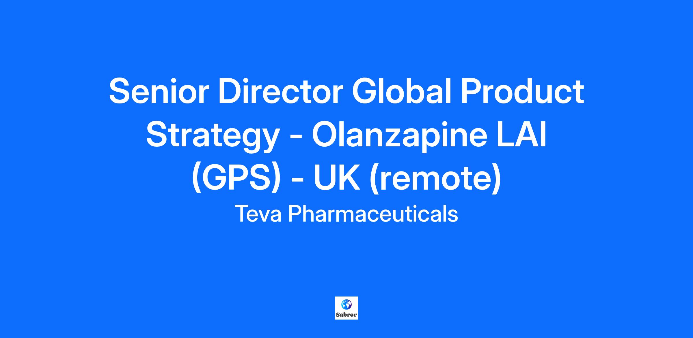 Who we are Together, we’re on a mission to make good health more affordable and accessible, to help millions around the world enjoy healthier lives. It’s a mission that bonds our people across nearly 60 countries and a rich, diverse variety of nationalities and backgrounds. Working here means working with the world’s leading manufacturer of generic medicines, and the proud producer of many of the products on the World Health Organization’s Essential Medicines List. Today, at least 200 million people around the world take one of our medicines every single day. An amazing number, but we’re always looking for new ways to continue making a difference, and new people to make a difference with.The opportunity As Senior Director, Global Product Strategy – Olanzapine LAI, you will shape and execute the long-term strategic vision and support the global product strategy for our Olanzapine LAI asset - translating scientific innovation into long-term brand and business value. This global leadership role is responsible for helping shape and execute the brand’s strategic direction, driving launch excellence, and maximizing long-term value across key markets. You will collaborate cross-functionally to translate scientific innovation into compelling commercial strategies, ensuring Olanzapine LAI’s success throughout its lifecycle. This position can be based in the US (Parsippany), the Netherlands (Haarlem) or the UK. (In the UK, it can be based remotely.) TRAVEL REQUIREMENTS Approximately up to 20% travel to support key meetings and cross-functional planning. How you’ll spend your day Support the implementation of the global brand strategy, including launch planning, lifecycle management, and indication sequencing. Navigate ambiguity and drive alignment across global and regional stakeholders. Partner with regional and affiliate teams to ensure market preparedness and launch readiness. Identify and prioritize market expansion opportunities, including new geographies and indications. Collaborate with Regional Commercial Teams, R&D, Medical Affairs, and Market Access to guide evidence generation and asset decisions. Oversee market insights, competitive intelligence, and KPI tracking to inform strategy and adapt plans. Engage KOLs, advocacy groups, and external stakeholders to shape brand perception and support scientific exchange. Lead the development of global campaign assets and core messaging, ensuring clarity, consistency, and relevance across markets. Drive storytelling excellence to communicate Olanzapine LAI’s value to HCPs, payers, and patients. Your experience and qualifications Bachelor’s degree required; Master’s or other advanced degree preferred. A minimum of 15 years of experience in commercial, marketing, or sales leadership roles. Recent experience in a Tier 1 market (US or EU5) preferred, ideally within the last 5 years. Senior marketing experience in a market or LOC, preferably as a launch lead with global stakeholder collaboration. Proven success in developing strategies that deliver long-term commercial results. Experience across multiple therapeutic areas; schizophrenia preferred. Deep understanding of industry best practices and current market trends. Recognized expert with strong leadership and communication capabilities. Demonstrated success in developing others and leading cross-functional teams. Operates with autonomy and accountability in a global matrix environment. Already Working @TEVA? If you are a current Teva employee, please apply using the internal career site available on "Employee Central". By doing so, your application will be treated with priority. You will also be able to see opportunities that are open exclusively to Teva employees. Use the following link to search and apply: Internal Career Site The internal career site is available from your home network as well. If you have trouble accessing your EC account, please contact your local HR/IT partner.Teva’s Equal Employment Opportunity Commitment Teva Pharmaceuticals is committed to equal opportunity in employment. It is Teva's policy that equal employment opportunity be provided without regard to age, race, creed, color, religion, sex, disability, pregnancy, medical condition, genetic information, marital status, sexual orientation, gender identity or expression, ancestry, national or ethnic origin, citizenship status, military status or status as a disabled or protected veteran, or any legally recognized status entitled to protection under applicable federal, state, or local laws. Please advise us of any accommodations needed to support you throughout the recruitment and selection process. All accommodation information provided will be treated as confidential and used only for the purpose of providing an accessible candidate experience. Request a reasonable accommodation by sending an email to disabilityassistance@tevapharm.com with the nature of your request and your contact information. Only inquiries concerning a request for a reasonable accommodation will be responded to from this email address.
