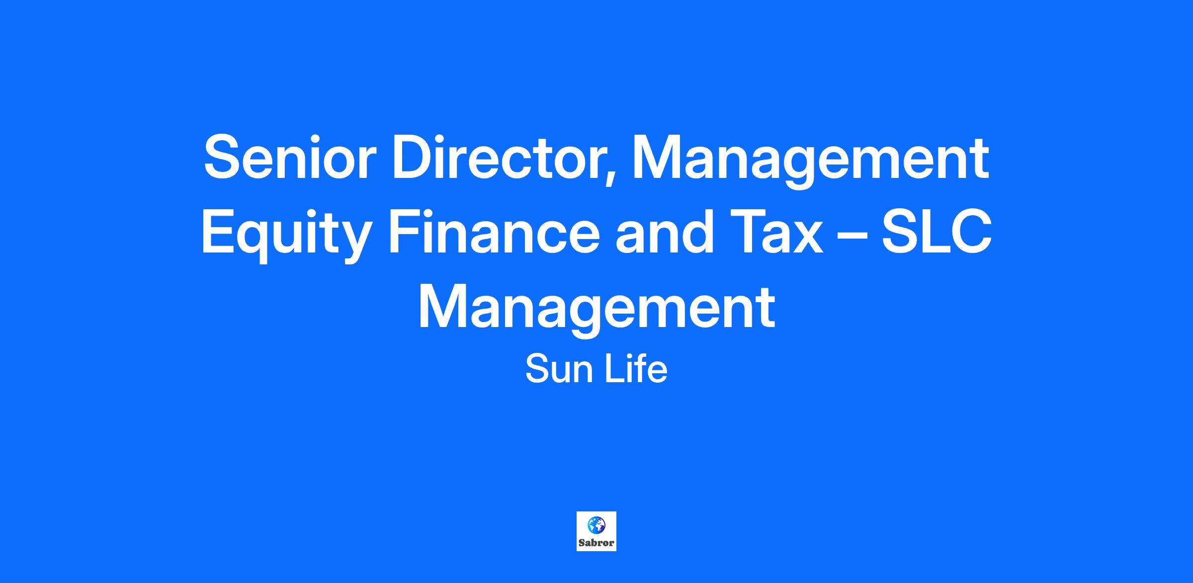 Senior Director, Management Equity Finance and Tax – SLC Management