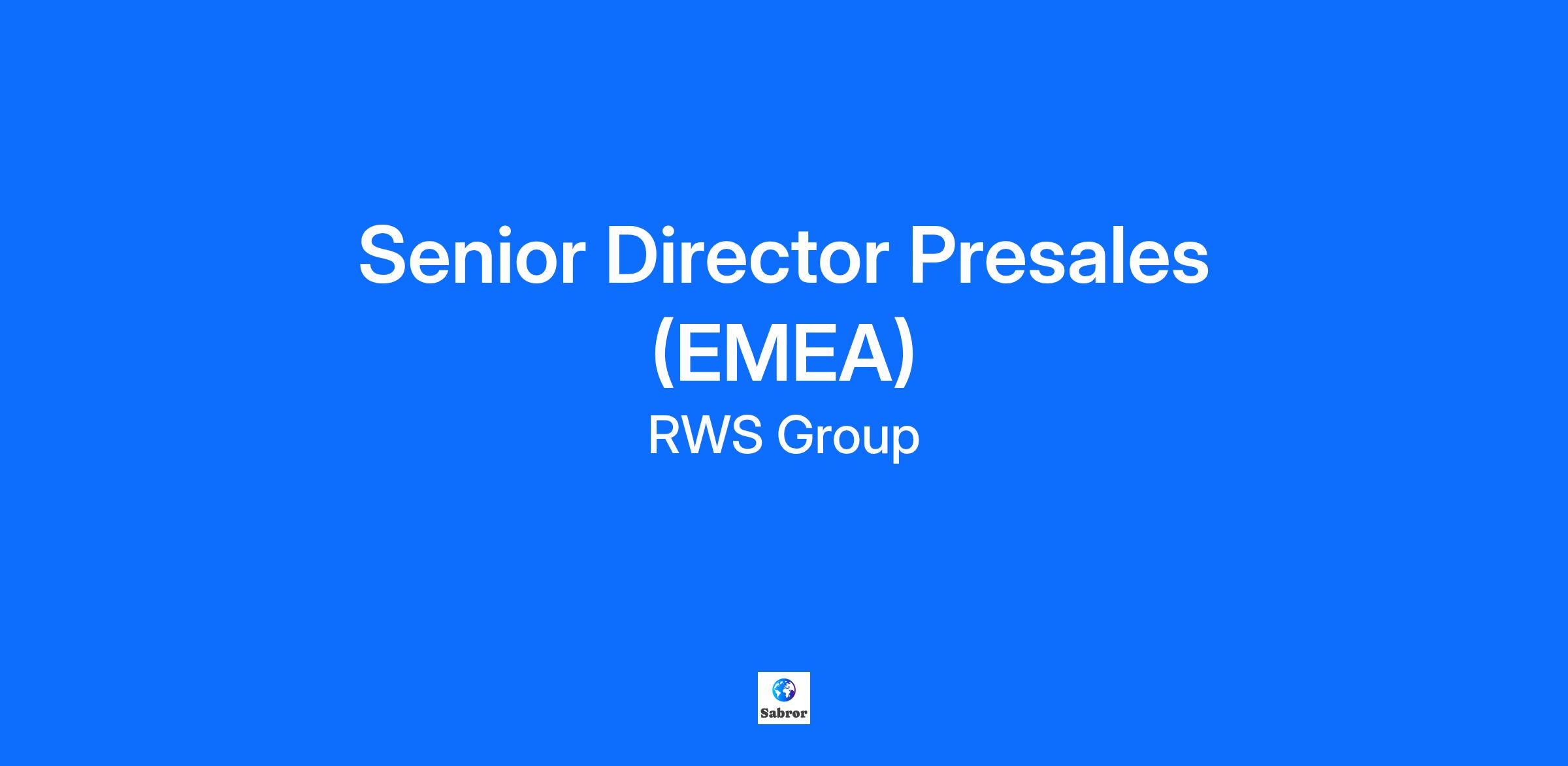 Job Purpose Job Purpose We are seeking a Senior Director, Enterprise Presales (EMEA) to lead our regional presales function within RWS Transform. In this highly visible role, you will define and drive presales strategy across Europe, the Middle East, and Africa, partnering closely with enterprise sales leaders to shape winning solutions for some of the region’s most influential organizations, across multiple industries and government sectors. You’ll lead an experienced and talented team of solution consultants across EMEA, working directly with executive stakeholders at global brands and collaborating with colleagues worldwide. If you thrive on solving complex business challenges with innovative technology and expert services and you’re passionate about the role of language, AI, and digital transformation, this role offers an exciting opportunity to have regional impact with a global reach. About Transform At RWS, we enable the world’s largest enterprises to communicate with global audiences through cutting-edge language technology, AI-driven solutions, and expert services. Our RWS Transform division empowers organizations to accelerate digital transformation, scale global content, and unlock growth in every market. Job Overview Key Responsibilities Lead, develop, and expand a high-performing EMEA presales team aligned to enterprise growth objectives. Partner with sales leadership to design solution strategies for complex, high-value enterprise opportunities across the region. Serve as a trusted advisor to C-level executives, presenting RWS’s value proposition in the context of digital transformation, AI, multilingual content strategy, and regulatory pressures. Innovate how RWS demonstrates its solutions, driving best practices, storytelling, and thought leadership across presales engagements. Collaborate with Product, Engineering, and Marketing to bring EMEA customer needs and insights into global solution design and positioning. Foster a culture of excellence, innovation, and continuous learning across the presales organization in EMEA. Skills & Experience Significant and demonstrable enterprise presales, solution consulting, professional services, language delivery, or technical sales leadership experience. Demonstrated success leading presales strategy for large, complex enterprise deals in the EMEA region. Executive presence with exceptional communication skills and the ability to influence C-level stakeholders. Strong leadership track record, including building and scaling geographically distributed presales teams. Experience in language technology, SaaS, enterprise software, regulated industries, language services or related digital transformation solutions is strongly preferred. Deep understanding of the EMEA enterprise and regulatory landscape and customer expectations. Life at RWS Life at RWS - If you like the idea of working with smart people who are passionate about growing the value of ideas, data and content by making sure organizations are understood, then you’ll love life at RWS. Our purpose is to unlock global understanding. This means our work fundamentally recognizes the value of every language and culture. So, we celebrate difference, we are inclusive and believe that diversity makes us strong. We want every employee to grow as an individual and excel in their career. In return, we expect all our people to live by the values that unite us: to partner, putting clients fist and winning together, to pioneer, innovating fearlessly and leading with vision and courage, to progress, aiming high and growing through actions and to deliver, owning the outcome and building trust with our colleagues and clients. RWS embraces DEI and promotes equal opportunity, we are an Equal Opportunity Employer and prohibit discrimination and harassment of any kind. RWS is committed to the principle of equal employment opportunity for all employees and to providing employees with a work environment free of discrimination and harassment. All employment decisions at RWS are based on business needs, job requirements and individual qualifications, without regard to race, religion, nationality, ethnicity, sex, age, disability, or sexual orientation. RWS will not tolerate discrimination based on any of these characteristics. RWS Values Get the 3Ps right – Partner, Pioneer, Progress – and we´ll Deliver together as RWS. Recruitment Agencies: RWS Holdings PLC does not accept agency resumes. Please do not forward any unsolicited resumes to any RWS employees. Any unsolicited resume received will be treated as the property of RWS and Terms & Conditions associated with the use of such resume will be considered null and void. #LI-Remote #LI-AG1 #LI-DNI