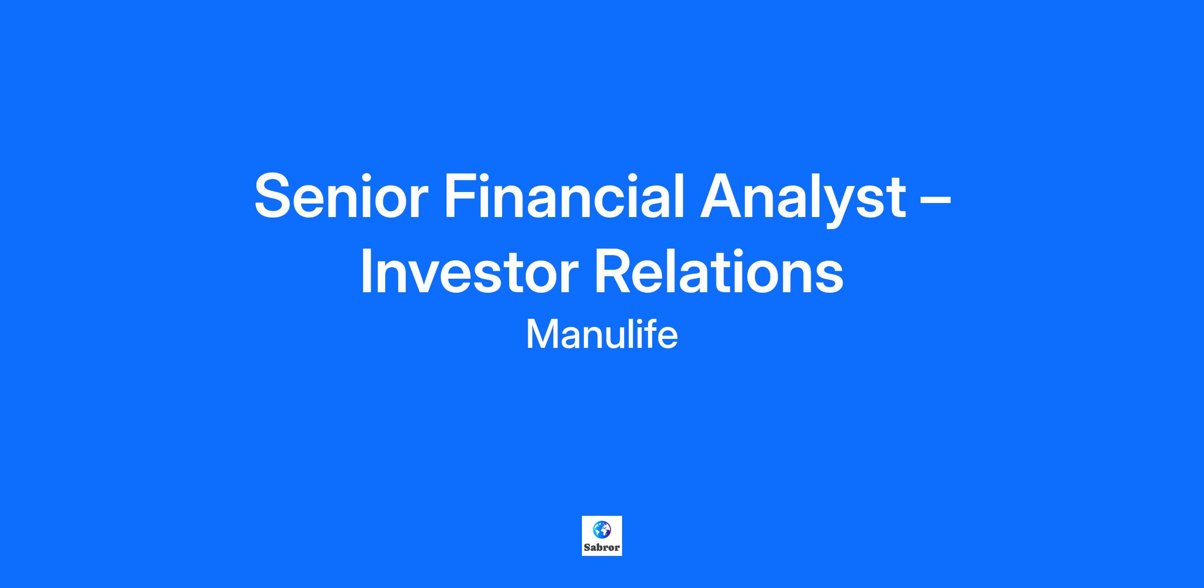 The Investor Relations (IR) team is primarily responsible for ongoing communication with the investment community including existing and prospective institutional shareholders, as well as sell side equity research analysts. The team’s mandate also includes providing market intelligence to internal partners. The Senior Financial Analyst - Investor Relations provides key analytical and marketing support to the IR team and would assist in a number of areas including monitoring and summarizing analyst and industry reports, conducting industry research and peer reviews, preparing materials for investor engagement events, as well as assisting in quarter end deliverables and special projects and initiatives. Position Responsibilities: Quarterly Analysis and Reporting: Summarize analysts' sentiments and reports pre- and post-earnings, analyze peer earnings calls, and prepare Board reports covering IR activities, goals, analyst sentiment, stock performance, and holdings Quarter end Reporting: Assist with drafting of earnings press releases, develop analyst slides, and speaking notes for earnings calls/webcasts, and other quarterly deliverables such as company fact sheets IR Website and Sharepoint Management: Manage content and aesthetics of the IR website, maintain IR Sharepoint content and user access, and lead Records Management within IR. Market and Financial Analysis: Conduct research and market analysis using IR tools (e.g., Bloomberg, NASDAQ IRI), review communication materials to ensure best practices, and prepare materials for marketing road shows Strategic Projects and Initiatives: Initiate and complete strategic projects using internal and external resources, assist with IR marketing efforts, maintaining investor targeting models, and develop short-term and long-term IR marketing plans Ad-hoc Requests and Special Projects: Participate in ad hoc or special projects as required, ensuring alignment with overall strategic goals and employing available resources Collaborate extensively with internal partners to collect input, communicate feedback and influence as required. Communicate with external stakeholders professionally as a representative of the company Required Qualifications: 1-3 years or more, of progressive work experience in the financial services industry Ability to learn quickly and act nimbly; demonstrated time management and organizational skills. Ability to work within tight and changing time constraints and to handle several tasks at one time Ability to work independently and as part of a team with a high commitment to internal and external customer service Strong judgment and initiative in anticipating and solving issues Strong attention to detail and analytical skills Strong written and verbal communication skills Ability to employ external data sources and tools to complete day-to-day activities; proficient with Microsoft tool set Curiosity and skills to learn and adapt, with a continuous improvement attitude Preferred Qualifications: Undergraduate degree in finance or accounting; CPA or CFA an asset Working understanding of the insurance and/or wealth asset management business and/or Manulife’s products and distribution strategies an asset Prior work experience directly in or adjacent to investor relations function an asset Strong working knowledge of financial reporting required; management reporting skills an asset Familiarity with Bloomberg or NASDAQ IRI, prior experience in financial modeling and charting would be an asset When you join our team: We'll empower you to learn and grow the career you want We'll recognize and support you in a flexible environment where well-being and inclusion are more than just words As part of the global team, we'll support you in the shaping the future you want to see About Manulife and John Hancock Manulife Financial Corporation is a leading international financial services provider, helping people make their decisions easier and lives better. To learn more about us, visit https://www.manulife.com/en/about/our-story.html. Manulife is an Equal Opportunity Employer At Manulife/John Hancock, we embrace our diversity. We strive to attract, develop and retain a workforce that is as diverse as the customers we serve and to foster an inclusive work environment that embraces the strength of cultures and individuals. We are committed to fair recruitment, retention, advancement and compensation, and we administer all of our practices and programs without discrimination on the basis of race, ancestry, place of origin, colour, ethnic origin, citizenship, religion or religious beliefs, creed, sex (including pregnancy and pregnancy-related conditions), sexual orientation, genetic characteristics, veteran status, gender identity, gender expression, age, marital status, family status, disability, or any other ground protected by applicable law. It is our priority to remove barriers to provide equal access to employment. A Human Resources representative will work with applicants who request a reasonable accommodation during the application process. All information shared during the accommodation request process will be stored and used in a manner that is consistent with applicable laws and Manulife/John Hancock policies. To request a reasonable accommodation in the application process, contact recruitment@manulife.com. Referenced Salary Location Toronto, Ontario Working Arrangement Hybrid Salary range is expected to be between $71,925.00 CAD - $119,875.00 CAD If you are applying for this role outside of the primary location, please contact recruitment@manulife.com for the salary range for your location. The actual salary will vary depending on local market conditions, geography and relevant job-related factors such as knowledge, skills, qualifications, experience, and education/training. Employees also have the opportunity to participate in incentive programs and earn incentive compensation tied to business and individual performance. Manulife of