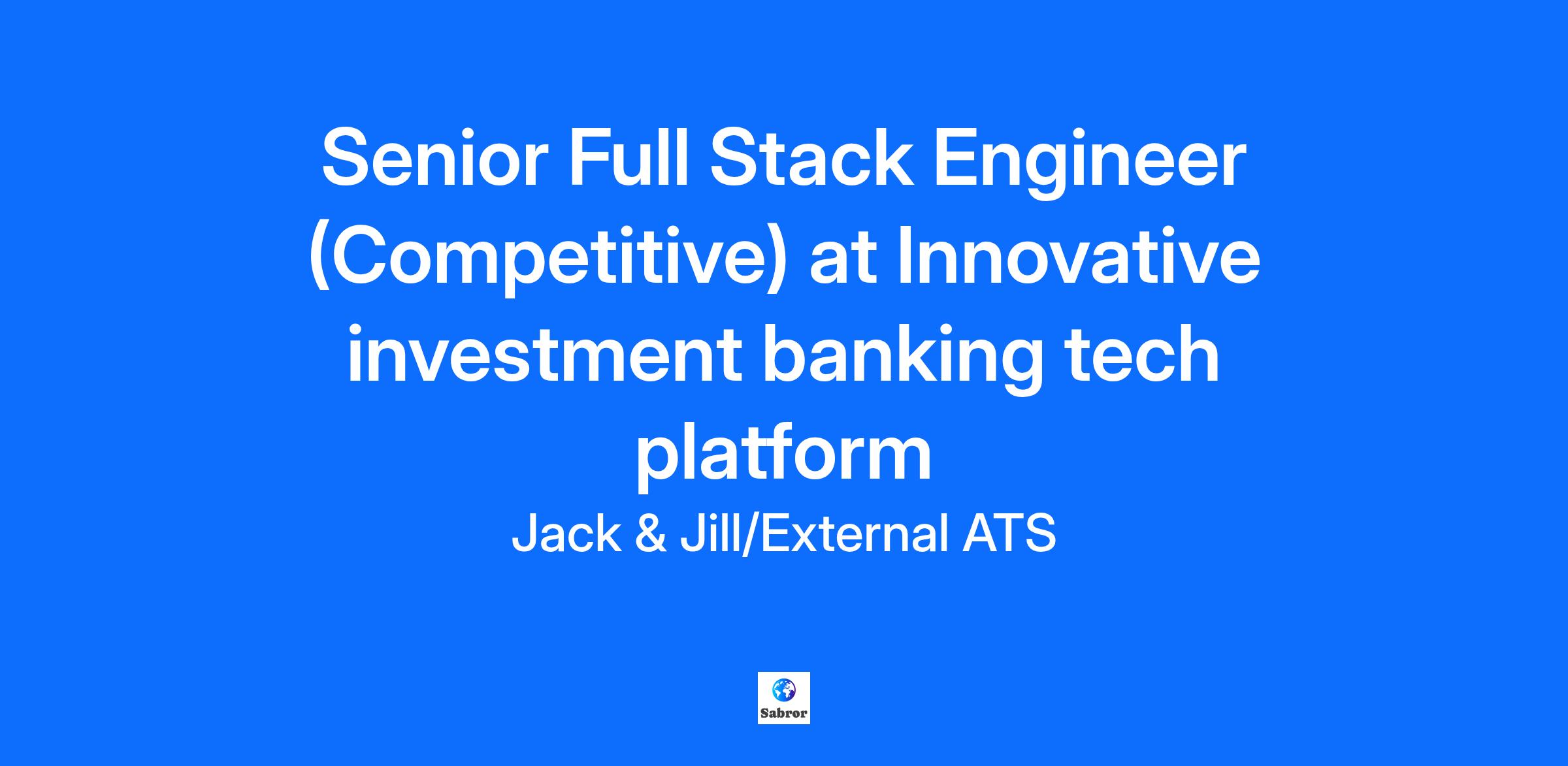 This is a job that Jill is helping to recruit for on behalf of one of our customers. To apply, speak to Jack. Title: Senior Full Stack Engineer (Competitive) at Innovative investment banking tech platform Job Title: Senior Full Stack Engineer Salary: Competitive Company Description: Innovative investment banking tech platform Job Description: Join a dynamic team building cutting-edge solutions for the investment banking sector. This role involves designing, developing, and deploying robust full-stack applications, ensuring high performance and scalability. You will contribute to critical features, enhance user experience, and drive innovation in a fast-paced, challenging environment, impacting financial professionals globally. Location: London, UK Why this role is remarkable: - Opportunity to shape the future of financial technology solutions - Backed by top-tier VCs with a strong market position - Significant growth potential within a rapidly expanding sector What you will do: - Design, develop, and deploy scalable full-stack applications - Collaborate closely with product, design, and other engineering teams - Ensure high code quality, performance, and maintainability across the platform The ideal candidate: - Strong experience in full-stack development with modern web technologies - Proficiency with relevant programming languages and frameworks - Experience working in fintech or high-transaction, data-intensive environments How to Apply: To apply for this job speak to Jack, our AI recruiter. Step 1. Visit our website. Step 2. Click 'Speak with Jack'. Step 3. Login with your LinkedIn profile. Step 4. Talk to Jack for 20 minutes so he can understand your experience and ambitions. Step 5. If the hiring manager would like to meet you, Jack will make the introduction.