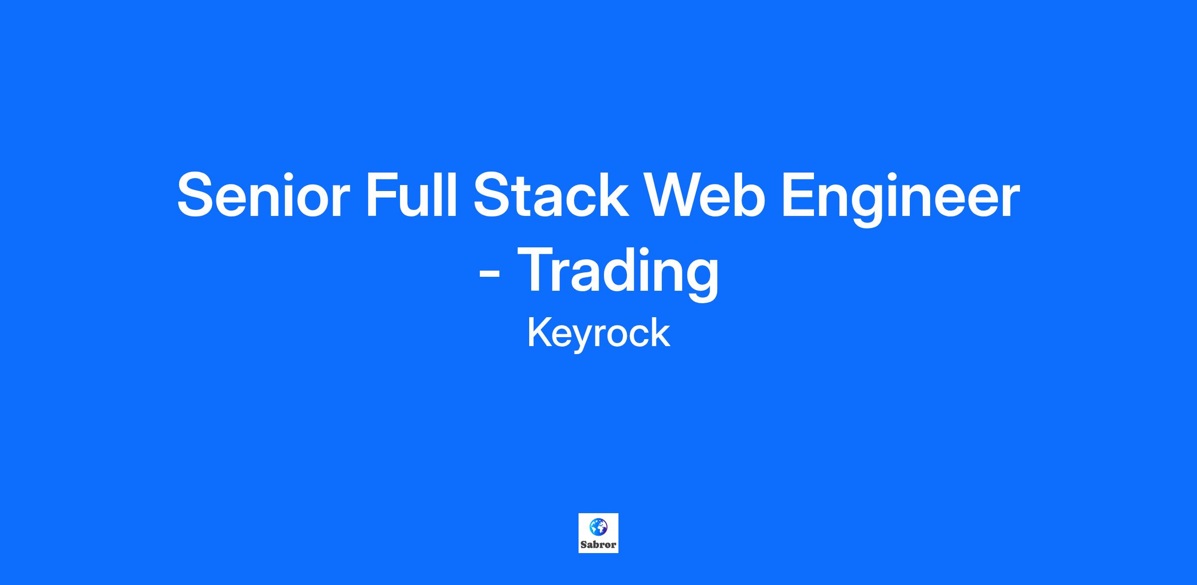 Senior Full Stack Web Engineer - Trading