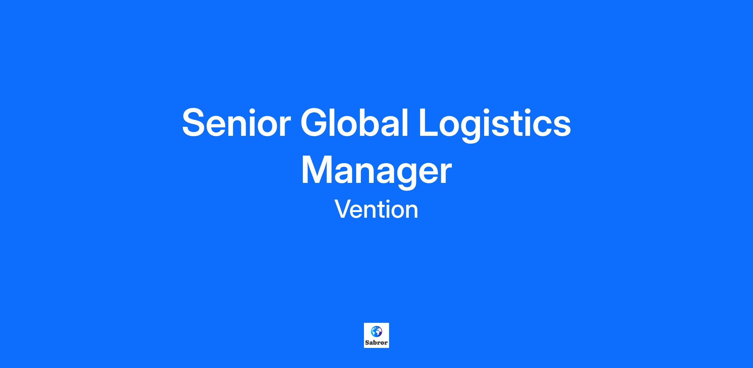 As Senior Global Logistics Manager at Vention…