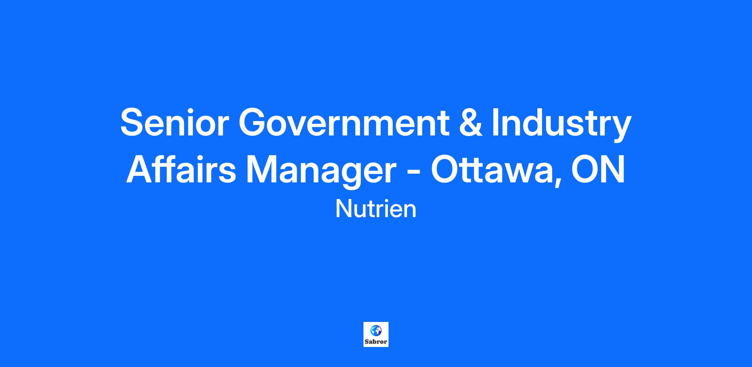 Nutrien is a leading provider of crop inputs and services, and our business results make a positive impact on the world. Our purpose, Feeding the Future, is the reason we come to work each day. We’re guided by our culture of care and our core values: safety, inclusion, integrity, and results. When we say we care, we mean it. We’re creating an inclusive workplace where everyone feels safe, has a sense of belonging, trusts one another, and acts with integrity.      Through the collective expertise of our nearly 26,000 employees, we operate a world-class network of production, distribution, and ag retail facilities. We efficiently serve growers' needs and strive to provide a more profitable, sustainable, and secure future for all stakeholders.  Help us raise the expectation of what an agriculture company can be and grow your career with Nutrien.    Reporting to the Senior Director, Global Government & Industry Affairs, the Government & Industry Affairs Senior Manager will be self-motivated and able to work autonomously to build the Company’s network, influence and impact with public policy decision makers in priority Canadian jurisdictions (federal and provincial). This individual is expected to anticipate, triage and manage policy issues that can impact or support Nutrien’s business objectives.   What you will do: Work closely with other departments within Nutrien to ensure consistency and integration of all message delivery efforts that may impact the Company’s relationship with its Canadian government stakeholders and partners. Develop and execute on a multifaceted Government and Industry Affairs Strategy involving a number of priority jurisdictions within Canada, aligned with Nutrien’s long-term business objectives and policy interests. Serve as a key point of contact with all Corporate functions providing expert guidance on navigating government relations requirements and serving in an executional and advisory role as required. Strengthen and expand relationships in key jurisdictions across all levels of government (bureaucratic and political), ensuring Nutrien is a trusted and influential stakeholder in relevant policy discussions. Represent Nutrien within key industry partners, third-party associations, and coalitions to help develop and advocate corporate positions on critical issues. Act as a key strategic resource for the Company in monitoring and analyzing studies and research pertaining to complex policy, legislation, and industry trends; develop and provide timely briefings and guidance to internal and external stakeholders; support and help manage the Company’s response to proposed and enacted legislation and regulations. In partnership with Nutrien’s Legal Department, oversee compliance with all government regulatory requirements for lobbyist registration and record-keeping. Act as the spokesperson and ambassador in Ottawa to promote Nutrien as an industry leader and represent the Company in relationships with governing bodies and industry associations in Canada.   What you will bring: 10 years in the field of Government Relations and/or political management. Bachelor’s degree in a related field, such as political science, agriculture, economics, history, marketing, public relations, or equivalent experience. Familiarity with the key government programs and priorities in relevant Canadian jurisdictions. A fundamental understanding of the external drivers of, and risks to, the agriculture, mining and fertilizer industries. Strong working-level relationships with government officials and regulatory authorities. Prior experience with agriculture or mining industry associations is an asset. A history of self-motivation and independence. Proficiency in establishing and maintaining relationships with key stakeholders. Ability to travel extensively is essential.   Ready to make an impact with us? Apply today!      The estimated salary that Indeed, Glassdoor and LinkedIn lists does not represent Nutrien's compensation structure. Nutrien is an equal opportunity employer.  We evaluate qualified applicants without regard to race, color, religion, sex, sexual orientation, gender identity, national origin, disability, veteran status, and other legally protected characteristics.      This job will remain posted until filled. In accordance with Nutrien policies, you will be required to undergo a background check, and may be required to undergo a substance test. While we appreciate all applications we receive, only candidates under consideration will be contacted. Applicants must meet minimum age requirements, as permitted by law.      Our Recruitment Process: Application > Resume Review > Pre-screen/Interview > Offer > Pre-Employment Conditions > Welcome to Nutrien     To stay connected to us and for the latest job postings and news, follow us on:  LinkedIn, Facebook, Instagram, and X.