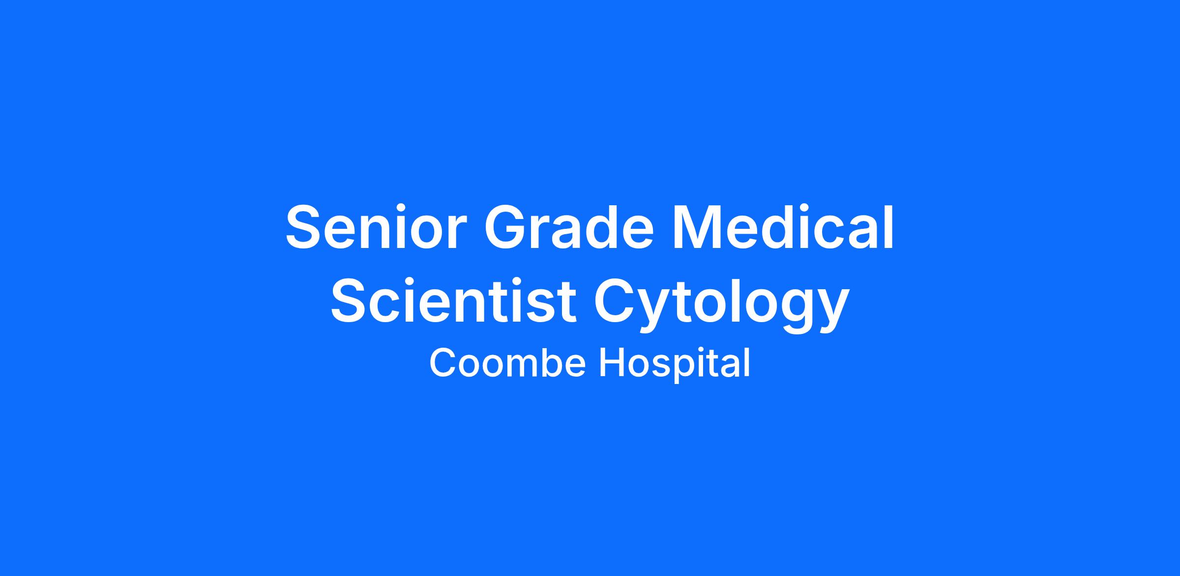 · Senior Medical Scientist Cytology- Permanent Full-Time 1.0WTE