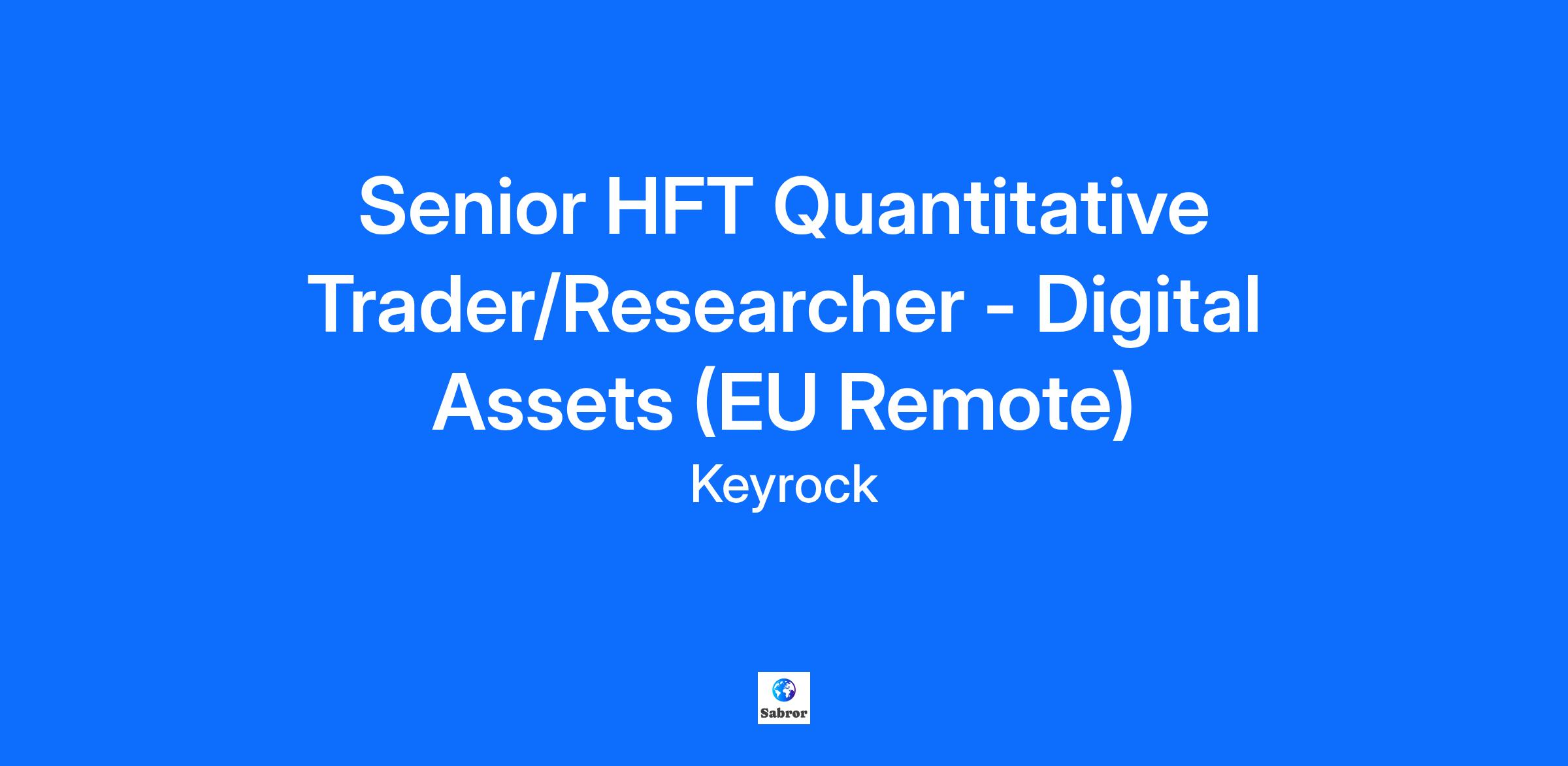 What we are looking for… a dynamic, driven Senior HFT Quantitative Trader/Researcher to work in collaboration with our engineers, data scientists and quantitative traders. We are currently looking for people with experience developing and running systematic strategies in the HFT space.