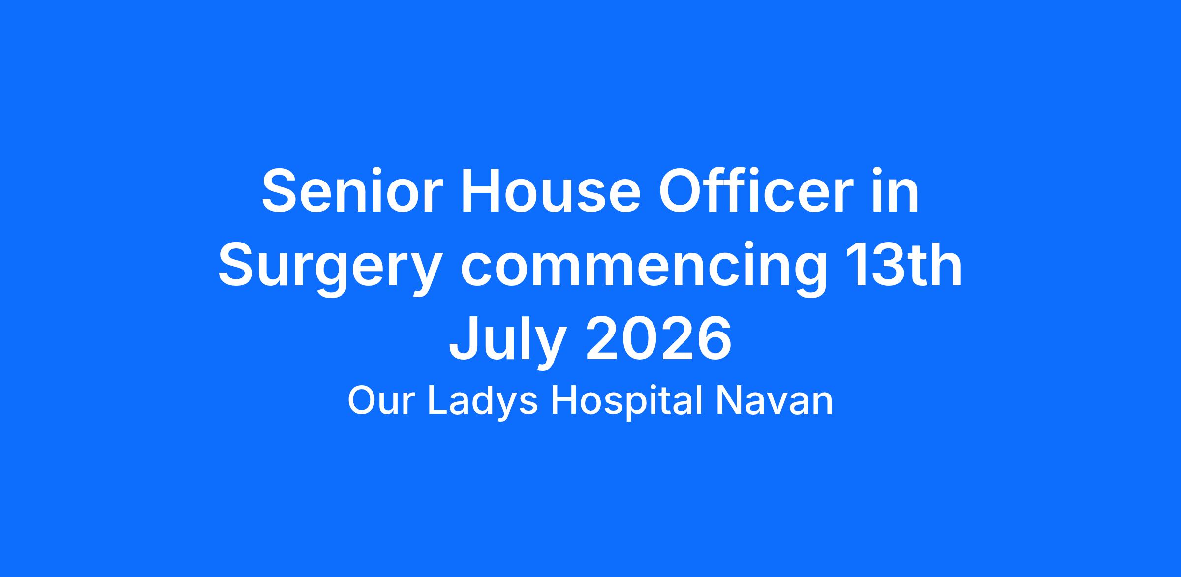 Senior House Officer in Surgery commencing 13th July 2026