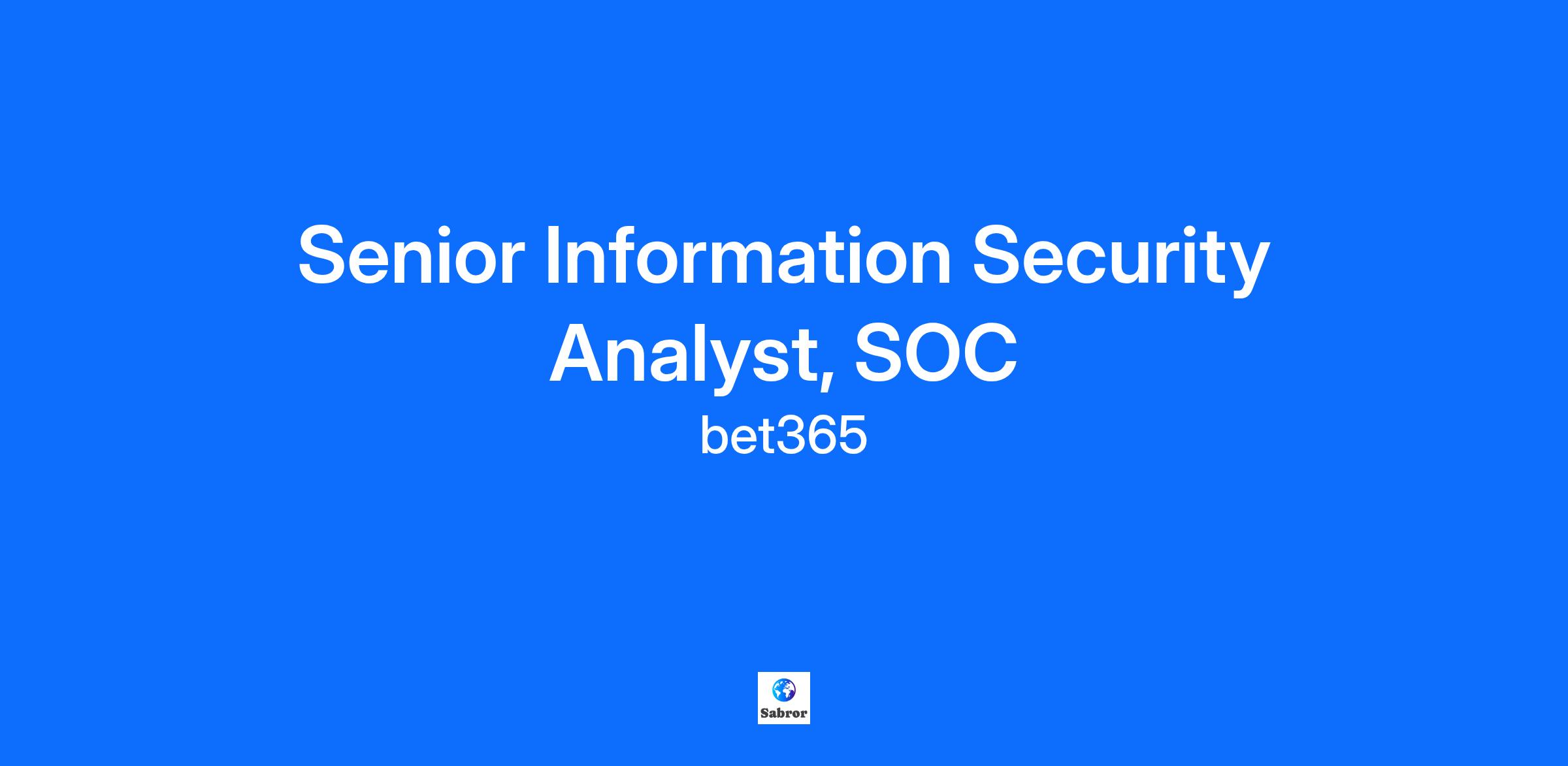 Company Description At bet365, we're one of the world's leading online gambling companies, revolutionising the industry since 2000. Founded by Denise Coates CBE, we now employ over 9,000 people and serve over 100 million customers in 27 languages. Our focus on In-Play betting has solidified our market-leading position, offering an unmatched experience across 96 sports and 700,000 streaming events. With over 750 concurrent sporting fixtures at peak and more live sports streamed than anyone else in Europe, we handle over 6 billion HTTP requests daily and process more than 2 million bets per hour at peak. We empower our employees to push boundaries and explore new ideas, cultivating a culture that celebrates and rewards creativity. This offers employees a wealth of opportunities for growth, giving them the opportunity to make a real impact in the world of online gambling. As a forward-thinking company, we’re breaking new ground in software innovation too, redefining what’s possible for our customers worldwide. Job Description As a Senior Information Security Analyst, you will focus on the technical side of information security to ensure IT systems are built and operated in a secure manner. The Information Security team monitors live operations, creating and reacting to alerts and anomalies identified through automated tools or manual analysis. The Security Operations Centre (SOC) owns the end to end process from alert to resolution and are a major part of the cyber incident management process. As such, they are both a reviewer of alerts and the resolver group, not necessarily fixing, but certainly identifying the issue. As part of SOC function, you will work closely with the engineering team to define tool requirements and onboard new functionality. You will also collaborate with colleagues in governance and compliance to ensure appropriate data usage. We use industry-leading, enterprise tools to identify threats, along with in-house scripts and internet research. The day-to-day work is fast-paced and dynamic, responding to business priority and threat landscape changes. This role is eligible for inclusion in the Company’s hybrid working from home policy. Qualifications Experience of taking a lead role championing information security aspects, both up front and throughout the project lifecycle. Demonstrate a high level of hands-on technical experience securing operating systems and use of security related tools. Experience of security related technical investigations. Working knowledge of industry standard information security practices. Knowledge of developments in security technologies and their applications. Awareness of Payment Card Industry Data Security Standard (PCI DSS) at current version. Excellent communication and documentation skills, as well as high attention to detail. Strong organisational skills and the ability to work to deadlines. Pragmatic approach to the administration of governance and risk. Display a committed, flexible, can-do attitude towards work. Additional Information Owning the technical aspect of the incident management process related to information security issues. Undertaking security related investigations. Overseeing the daily security operational processes and acting as an escalation point where necessary. Responding to, and reporting on, system alerts from various monitoring technologies. Leading the project process to ensure that information security aspects are considered up front and throughout the project lifecycle. Developing a thorough understanding of the Business, whilst supporting other members of the team. Liaising with the Business to ensure that information security requirements within each of the different jurisdictions in which we operate are complied with. Creating technical documentation. Taking an active role in audits as necessary. By applying to us you are agreeing to share your Personal Data in accordance with our Recruitment Privacy Notice - https://www.bet365careers.com/privacy-policy At bet365, we're committed to creating an environment where everyone feels welcome, respected and valued. Where all individuals can grow and develop, regardless of their background. We're Never Ordinary, and we're always striving to be better. If you need any adjustments or accommodations to the recruitment process, at either application or interview, please don’t hesitate to reach out.