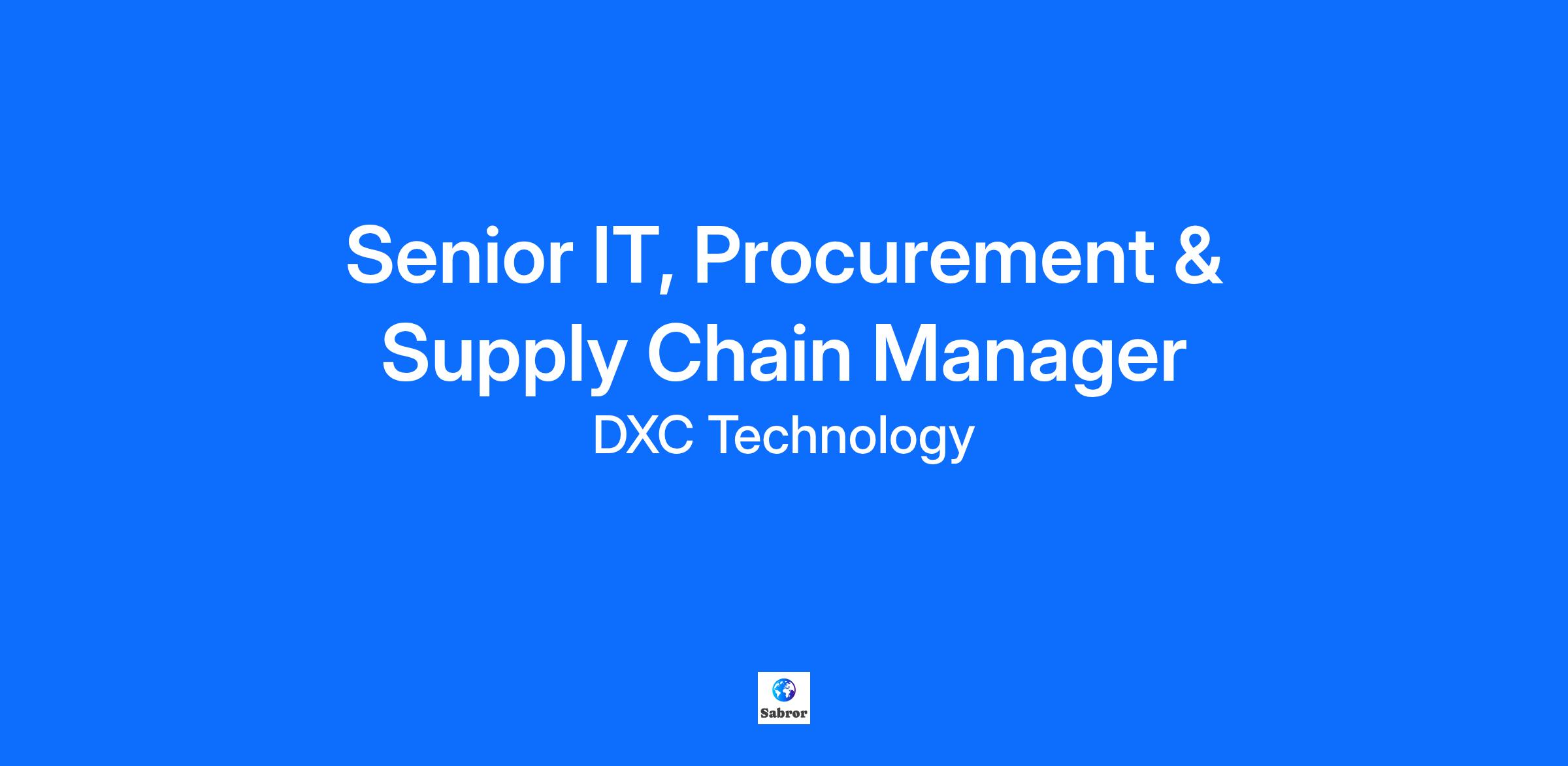 Due to continued growth DXC Technology have a great opportunity for an experienced Senior IT, Procurement and Supply Chain Manager