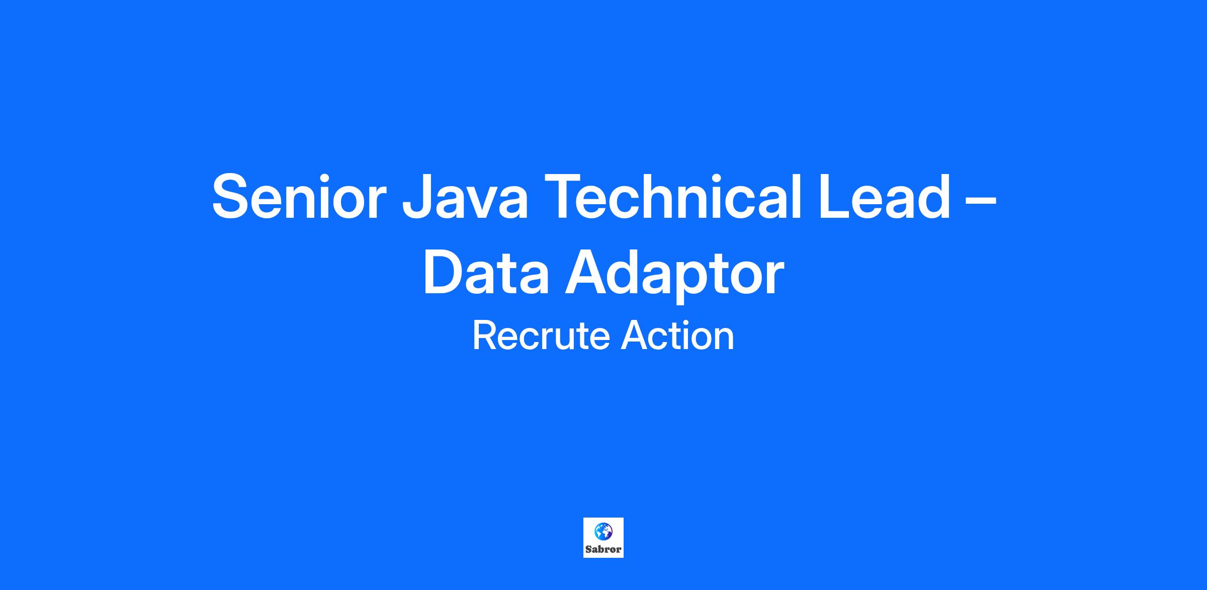 Senior Java Technical Lead – Data Adaptor