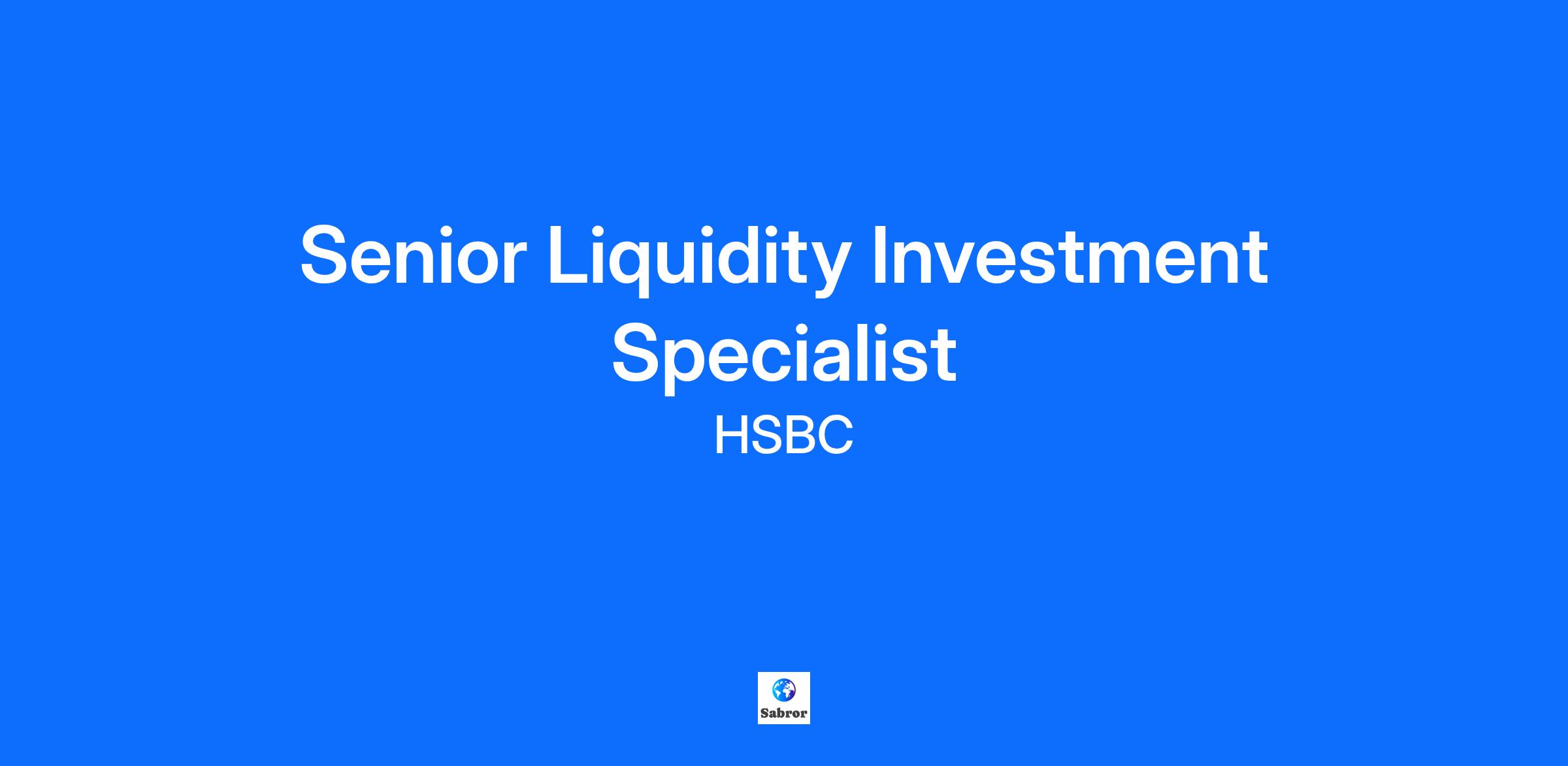 We have an opportunity within HSBC Asset Management for a Liquidity Investment Specialist