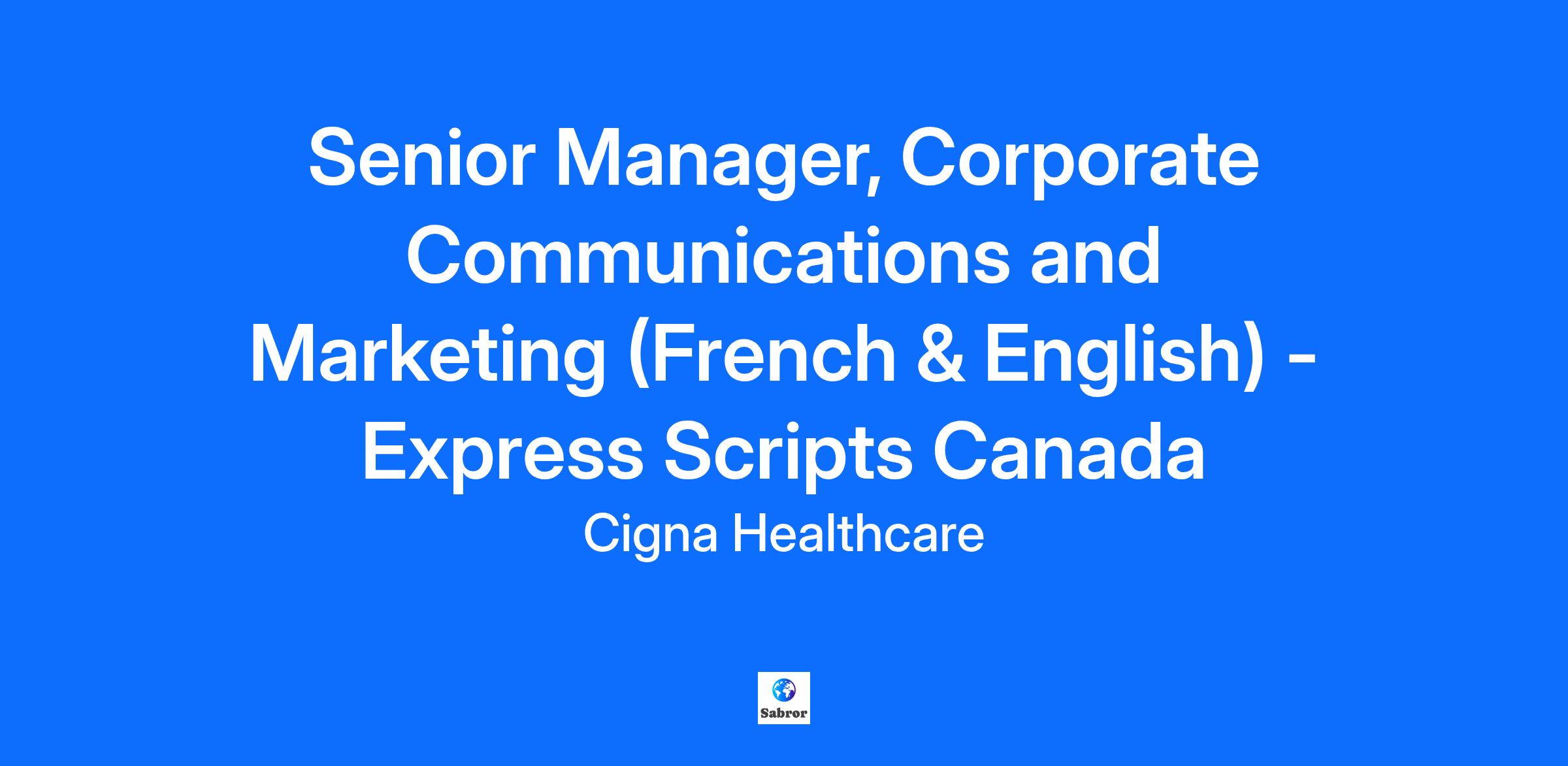 Senior Manager, Corporate Communications and Marketing (French & English) - Express Scripts Canada