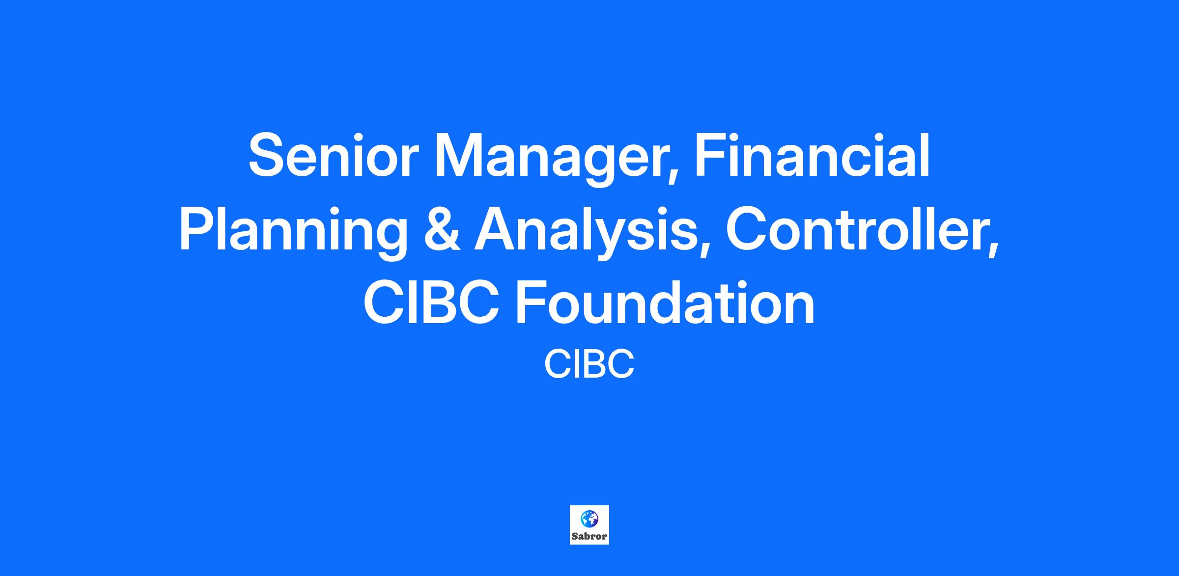 Senior Manager, Financial Planning & Analysis, Controller, CIBC Foundation