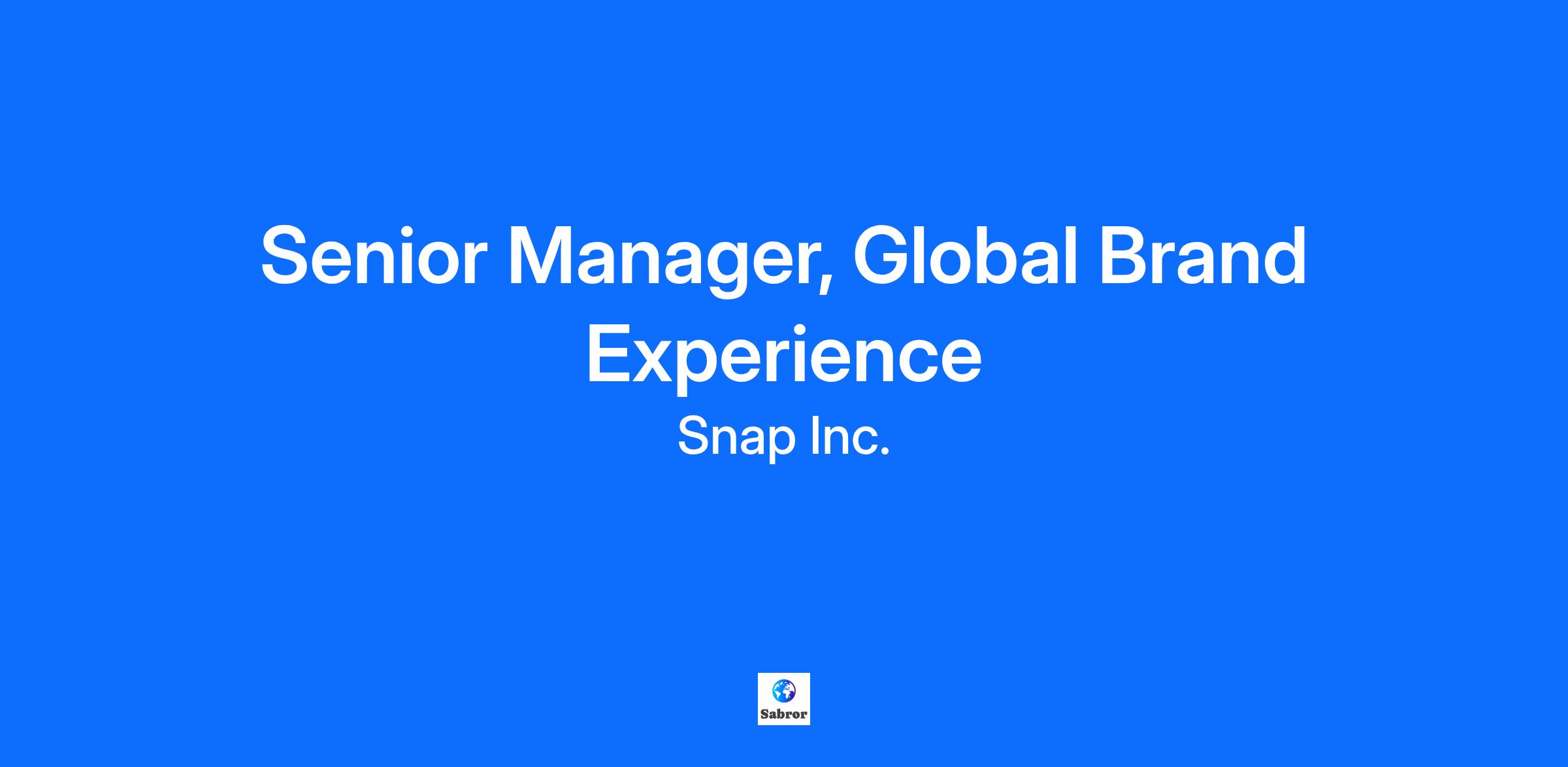Snap Inc is a technology company. We believe the camera presents the greatest opportunity to improve the way people live and communicate. Snap contributes to human progress by empowering people to express themselves, live in the moment, learn about the world, and have fun together. The Company’s three core products are Snapchat, a visual messaging app that enhances your relationships with friends, family, and the world; Lens Studio, an augmented reality platform that powers AR across Snapchat and other services; and its AR glasses, Spectacles. The Global Brand Experience (GBX) team brings Snap brands to life while reinforcing what we stand for as a company — real friendship, free and authentic expression, human-centered design, and a playful irreverence. The team does this globally through in-person and virtual experiences. The GBX team’s mission is to educate our broader community on Snap’s brands by creating opportunities to connect with them on a more emotional level. They look for extraordinary and diverse talent who learn quickly, take big risks, and relish in surprising and delighting our community. We’re looking for a Sr. Manager, Global Brand Experience - EMEA to join Snap Inc! As a member of GBX, you will oversee the conception, planning and execution of experiential marketing activations as well as bringing the Snap brand to life in various executions. Working from our London office, you’ll collaborate with a wide-array of internal teams as well as external partners to produce client-facing events, projects and experiences. What you’ll do: Ideate, conceptualize and execute Snap’s signature brand experiences, both owned and operated and the company’s presence at industry-wide events. Communicate Snap’s products, culture and values through internal, external, business, marketing & sales events Coordinate, operationalize and execute complex projects on a global scale Think outside of the box to bring Snapchat to life, spark interest and creativity Develop and manage comprehensive project timelines and budgets to support EMEA wide initiatives Work cross-functionally with stakeholders at all levels of the organization, driving projects across teams and time zones, and managing vendors Partner closely with the Sales, Product, Partnerships, Marketing and Executive teams to help accomplish their strategic goals and generate revenue Initiate cross-functional collaboration and create impactful precedents and processes that contribute to the company’s success Embody Snap’s core values: smart, kind & creative Knowledge, Skills & Abilities: Identify, develop, and articulate business strategy Take initiative and delegate workstreams Strong work ethic and ability to simultaneously manage multiple tasks and meet tight deadlines Excellent communication skills both written and verbal Superior interpersonal skills to work with internal and external stakeholders Ability to handle ambiguity, in a complex project environment Fluent in Google Applications and Apple Applications Analytical and creative mindset Extremely detail-oriented with exceptional organizational skills Exceptional negotiation skills and understanding of contractual agreements with vendors and venues Ability to initiate and drive projects to completion with minimal guidance, and to work independently as well as collaboratively in a team environment Ability to problem solve quickly and efficiently Minimum Qualifications: BS/BA degree or equivalent years of experience Significant high-performance work experience, including experience with event planning with international scope. Experience managing teams. Preferred Qualifications: Experience in the creative, tech or media industries Experience in managing company-wide global initiatives Fluent in a language(s) other than English A passion for Snapchat and creativity If you have a disability or special need that requires accommodation, please don’t be shy and provide us some information. "Default Together" Policy at Snap: At Snap Inc. we believe that being together in person helps us build our culture faster, reinforce our values, and serve our community, customers and partners better through dynamic collaboration. To reflect this, we practice a “default together” approach and expect our team members to work in an office 4+ days per week. At Snap, we believe that having a team of diverse backgrounds and voices working together will enable us to create innovative products that improve the way people live and communicate. Snap is proud to be an equal opportunity employer, and committed to providing employment opportunities regardless of race, religious creed, color, national origin, ancestry, physical disability, mental disability, medical condition, genetic information, marital status, sex, gender, gender identity, gender expression, pregnancy, childbirth and breastfeeding, age, sexual orientation, military or veteran status, or any other protected classification, in accordance with applicable federal, state, and local laws. EOE, including disability/vets. Our Benefits: Snap Inc. is its own community, so we’ve got your back! We do our best to make sure you and your loved ones have everything you need to be happy and healthy, on your own terms. Our benefits are built around your needs and include paid parental leave, comprehensive medical coverage, emotional and mental health support programs, and compensation packages that let you share in Snap’s long-term success! A Decade of Snap: Learn about our origin story, values, mission, culture of innovation, and more. CitizenSnap: In our third annual CitizenSnap Report, we demonstrate progress towards our environmental, social, and governance (ESG) goals, and we lay out our plans looking forward. The DEI Innovation Summit: Watch highlights from the 2nd annual DEI Innovation Summit, which brings together thought leaders and DEI experts for a day of courageous conversations to enable bold action. Snap News: St