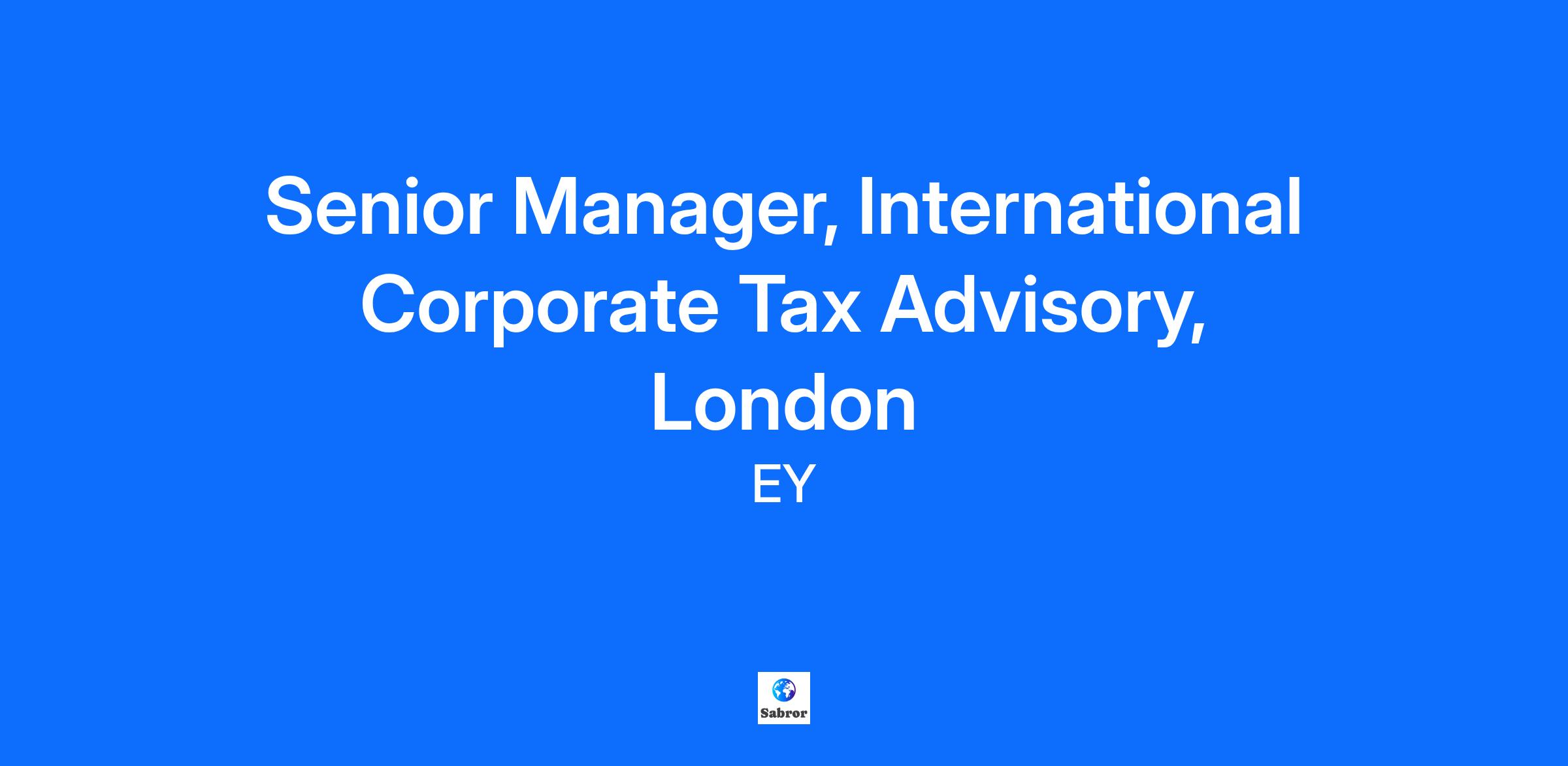 Senior Manager, International Corporate Tax Advisory, London