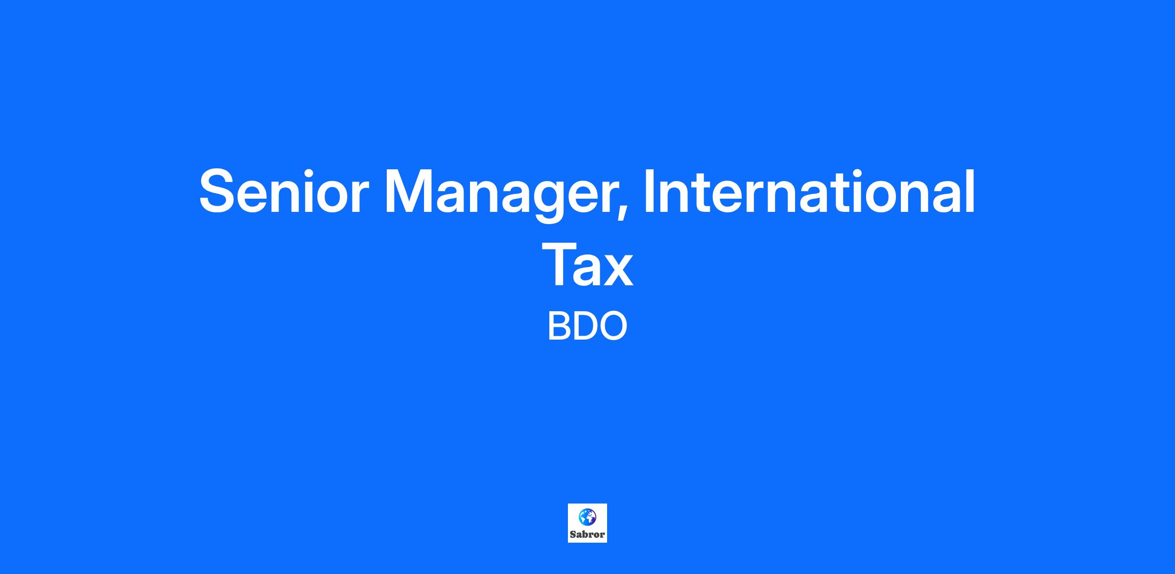 Putting people first, every day BDO is a firm built on a foundation of positive relationships with our people and our clients. Each day, our professionals provide exceptional service, helping clients with advice and insight they can trust. In turn, we offer an award-winning environment that fosters a people-first culture with a high priority on your personal and professional growth. Your Opportunity We are looking for a Senior Manager to join our International Tax team and own the following responsibilities: Be involved with the provision of tax services to our clients, including our growing public company division Understand and continually develop a sound understanding of taxation concepts and efficiently apply your knowledge of taxation to situations affecting our clients Propose practical and innovative tax solutions to clients and draw relevant conclusions. This includes preparing & review tax reorganizations and reviewing returns Tax consulting activities to include advising on international expansion, inbound expansion into Canada, assistance with tax controversy matters, preparation of tax memorandums and research on complex tax matters Participate in business development initiatives and identify new business opportunities with existing clients Effectively communicate with team members regarding progress updates and issues on an ongoing basis Engage in training staff and invest in the professional development of your team How do we define success for your role? You demonstrate BDO's core values through all aspects of your work: Integrity, Respect, and Collaboration You understand your clients' industry, challenges, and opportunities; clients describe you as positive, professional, and delivering high quality work You identify, recommend, and are focused on effective service delivery to your clients You share in an inclusive and engaging work environment that develops, retains, and attracts talent You actively participate in the adoption of digital tools and strategies to drive an innovative workplace You grow your expertise through learning and professional development Your experience and education You have completed your Canadian CPA designation and your In-Depth Tax Course or Masters of Tax You have 5 of more years of experience in the public accounting industry specializing in Tax You possess solid knowledge and understanding of Canadian and International Tax You have an extensive understanding of relevant tax legislation, corporate tax compliance and planning You have excellent verbal and written communication skills You value teamwork, client service, and quality in detailed work You display strong problem solving, analytical, and communication skills #LI-SS Why BDO? Our people-first approach to talent has earned us a spot among Canada’s Top 100 Employers for 2025. This recognition is a milestone we’re thrilled to add to our collection of awards for both experienced and student talent experiences. Our firm is committed to providing an environment where you can be successful in the following ways: We enable you to engage with how we change and evolve, being a key contributor to the success and growth of BDO in Canada. We help you become a better professional within our services, industries, and markets with extensive opportunities for learning and development. We support your achievement of personal goals outside of the office and making an impact on your community. Giving back adds up: Where company meets community. BDO is actively involved in our communities by supporting local charity initiatives. We support staff with local and national events where you will be given the opportunity to contribute to your community. Total rewards that matter: We pay for performance with competitive total cash compensation that recognizes and rewards your contribution. We provide flexible benefits from day one, and a market leading personal time off policy. We are committed to supporting your overall wellness beyond working hours and provide reimbursement for wellness initiatives that fit your lifestyle. Everyone counts: We believe every employee should have the opportunity to participate and succeed. Through leadership by our Diversity, Equity and Inclusion Leader, we are committed to a workplace culture of respect, inclusion, and diversity. We recognize and celebrate the valuable differences among each of us, including race, religious beliefs, physical or mental disabilities, age, place of origin, marital status, family status, gender or gender identity and sexual orientation. If you require accommodation to complete the application process, please contact us. Flexibility: All BDO personnel are expected to spend some of their time working in the office, at the client site, and virtually unless accommodations or alternative work arrangements are in place. Our model is a blended approach designed to support the flexible needs of our people, the firm and our clients. It’s about creating work experiences that meet everyone’s needs and providing flexibility to adjust when, where and how we work to meet the expectations of our role. Code of Conduct: Our Code of Conduct sets clear standards for how we conduct business. It reflects our shared values and commitments and includes guiding principles to help us make ethical decisions and maintain trust with each other, our clients, and the public. With your consent, BDO Canada may use AI technology (Microsoft Copilot) to transcribe during preliminary conversations, solely for the purpose of note-taking and not for other purposes, such as resume review, evaluation or selection of candidates. More information on BDO Canada’s Privacy Policy can be found here: Privacy Policy | BDO Canada Ready to make your mark at BDO? Click “Apply now” to send your up-to-date resume to one of our Talent Acquisition Specialists. To explore other opportunities at BDO, check out our careers page. When it comes to our people, we believe in helping you unlock p