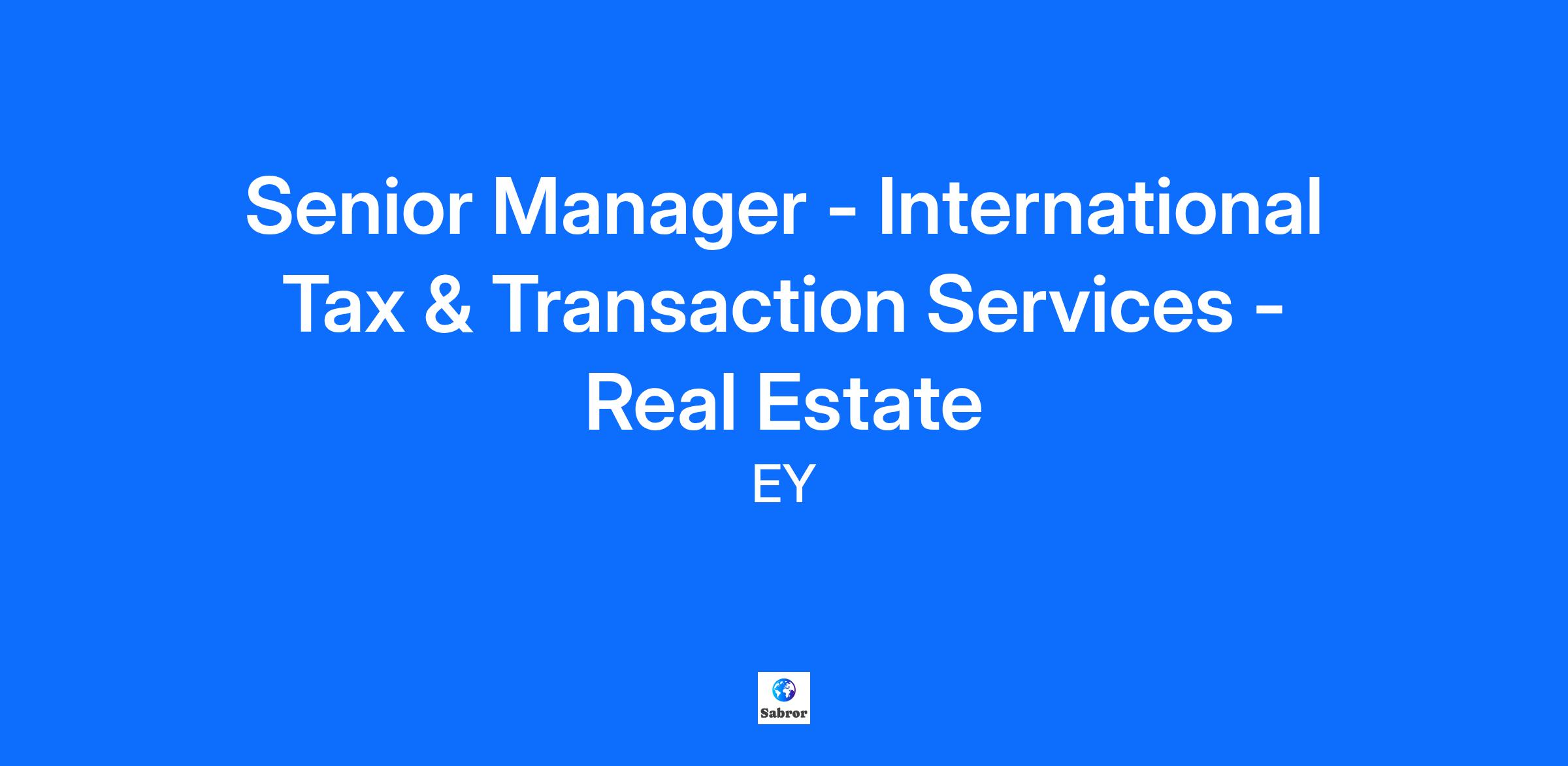 Senior Manager - International Tax & Transaction Services - Real Estate, Hospitality & Construction We’ve got an exciting opportunity to join our international tax services team, who are recognised as being leaders in international tax advisory and cross border M&A. You will be working with some of the largest corporation in the world advising them on their international tax planning and M&A deals. Working within our International Transaction Tax Service (ITTS) Practice focusing on the RHC offering. You will be working with some of the sector leading Partners who are well known and respected in the market. You’ll also be working with a high performing team who have advised on many high profile and market leading transactions over the past few years. It is a great time to join the ITTS team who have expanded exponentially in recent years and are continuing to grow. With a number of disrupting factors in the market at the moment you’ll be at the forefront of helping our clients to navigate the market challenges on an international scale. The opportunity The combination of experience and innovation in our team makes it not only one of the most exciting places to work in tax, but also a place where you can learn and develop into a skilled and renowned international tax adviser, working with UK / overseas MNCs, lawyers and banks on complex and exciting projects. Our international tax professionals will work on a variety of projects which are focused on helping clients to develop and execute their international tax strategy, including: Expansion into new markets Pre-transaction reorganisations and post-transaction integration Legal structure rationalisation Operating model redesign Optimisation of capital structure and financing Optimisation of intellectual property ownership and reliefs Managing the risk arising from global law change such as BEPS, and Lobbying and negotiation with tax authorities in UK and globally Your key responsibilities Build and maintain relationships with clients, winning work proactively and contributing to winning new clients Management of the successful delivery of technically complex and demanding consulting projects, ensuring technical excellence and practical / business focus approach taken Overall responsibility of quality of client service Manage possible leads from other areas of the practice Build networks and relationships internally and externally for the team to leverage from Develop junior staff through effectively supervising, coaching and mentoring Significant involvement in the management of the team both in terms of strategy and operations and also through managing junior staff development and assignments Skills and attributes for success Client focus and commercially aware Strong international and UK tax technical skills and understanding Commitment to building strong client relationship management with ability to develop quality outputs to clients Negotiation skills and handle challenges Business development skills, able to identify and convert opportunities to sell work Strong business acumen with ability to manage engagement financial results Effective time management, ability to remain calm when under pressure to meet deadlines Excellent communicator in a range of situations both written and oral Enthusiastic team player with ability to create, sustain effective teams Ensure delivery of quality work and take day to day delivery Change orientated and innovative with flexible approach to ways of working and adoption of new technologies To qualify for the role you must have ACA/CA/ACCA/CTA; or Tax Inspectors with full Technical Training Course; or Law qualification Degree qualified Experienced corporate tax practitioner Proven ability to read and interpret existing and new tax statute Experience of working in a client facing role in UK tax or similar jurisdiction Experience of working within the Real Estate sector Project management skills, plan and prioritize work, meet deadlines, monitor own budget What we offer Continuous learning: You’ll develop the mindset and skills to navigate whatever comes next.Success as defined by you: We’ll provide the tools and flexibility, so you can make a meaningful impact, your way.Transformative leadership: We’ll give you the insights, coaching and confidence to be the leader the world needs.Diverse and inclusive culture: You’ll be embraced for who you are and empowered to use your voice to help others find theirs.You can read more here: https://www.ey.com/en_uk/careers/what-its-like-to-work-here If you can confidently demonstrate that you meet the criteria above, please contact us as soon as possible.The exceptional EY experience. It’s yours to build. Apply now. About EY As a global leader in assurance, tax, transaction and advisory services, we’re using the finance products, expertise and systems we’ve developed to build a better working world. That starts with a culture that believes in giving you the training, opportunities and creative freedom to make things better. Whenever you join, however long you stay, the exceptional EY experience lasts a lifetime. EY exists to build a better working world, helping to create long-term value for clients, people and society and build trust in the capital markets. Enabled by data and technology, diverse EY teams in over 150 countries provide trust through assurance and help clients grow, transform and operate. Working across assurance, consulting, law, strategy, tax and transactions, EY teams ask better questions to find new answers for the complex issues facing our world today. Please Note: Prior to finalizing your application, you will be asked to provide personal information across several dimensions of diversity and inclusiveness. The information you provide is kept entirely confidential and will not be used to evaluate your candidacy. We collect this data to help us analyse our recruitment process holistically and implement actions that promote dive