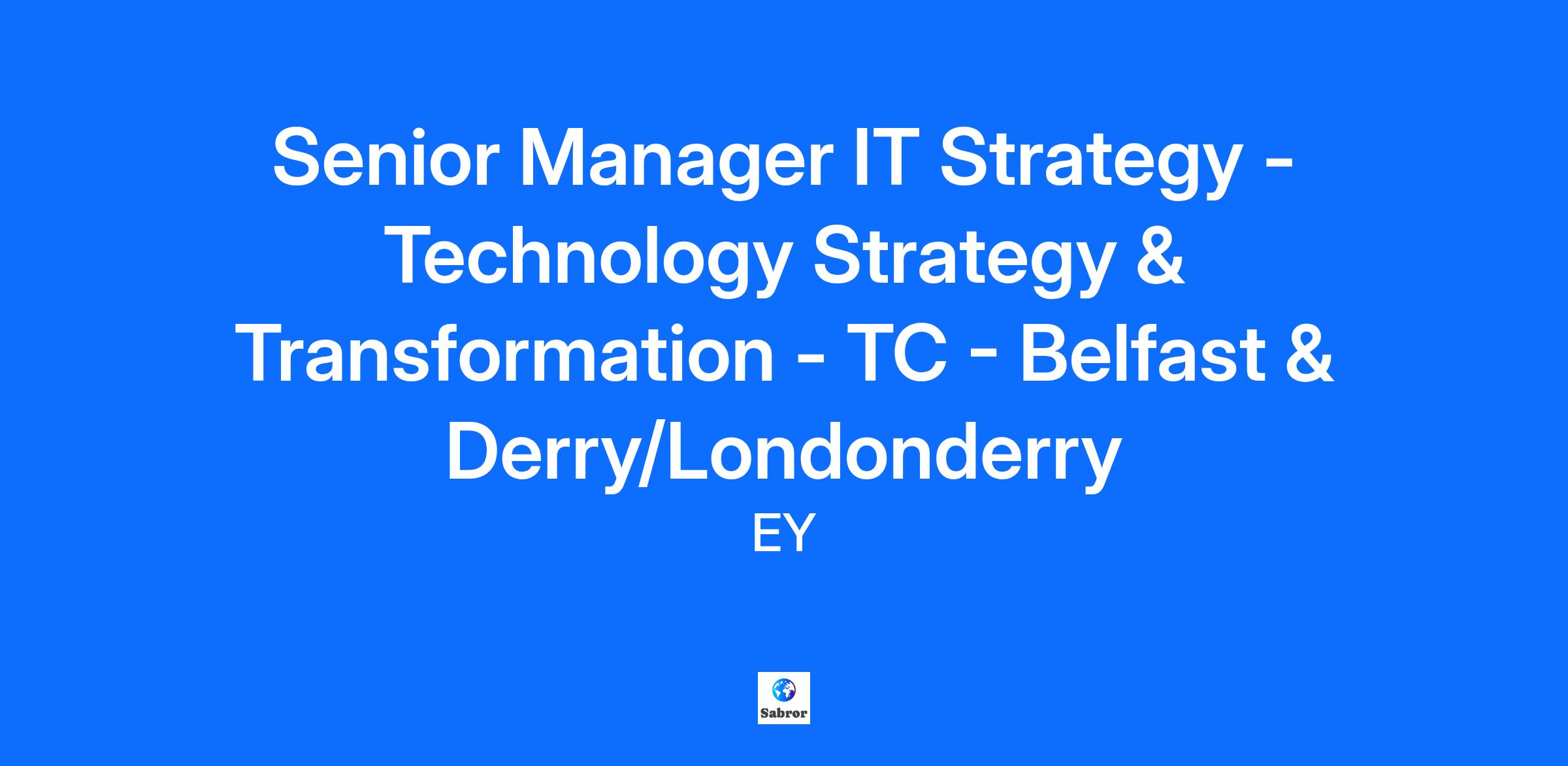 Senior Manager, IT Strategy – Technology Strategy & Transformation – Technology Consulting - Belfast, Derry & Londonderry