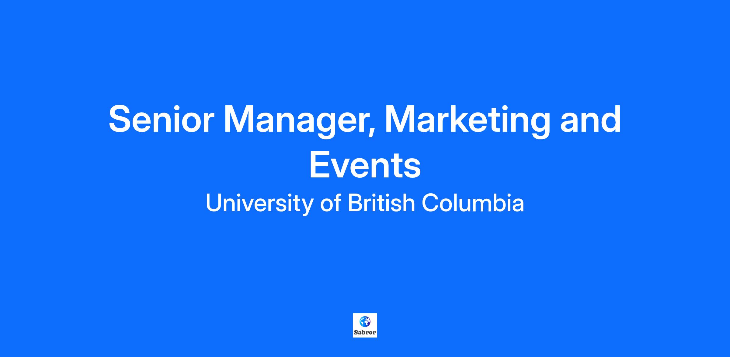 Staff - Non Union Job Category M&P - AAPS Job Profile AAPS Salaried - Marketing and Sales, Level B Job Title Senior Manager, Marketing and Events Department Marketing | Innovation UBC | Compensation Range $6,747.50 - $9,701.42 CAD Monthly The Compensation Range is the span between the minimum and maximum base salary for a position. The midpoint of the range is approximately halfway between the minimum and the maximum and represents an employee that possesses full job knowledge, qualifications and experience for the position. In the normal course, employees will be hired, transferred or promoted between the minimum and midpoint of the salary range for a job. Posting End Date October 29, 2025 Note: Applications will be accepted until 11:59 PM on the Posting End Date. Job End Date July 2, 2027 At UBC, we believe that attracting and sustaining a diverse workforce is key to the successful pursuit of excellence in research, innovation, and learning for all faculty, staff and students. Our commitment to employment equity helps achieve inclusion and fairness, brings rich diversity to UBC as a workplace, and creates the necessary conditions for a rewarding career. Job Summary The Senior Manager, Marketing and Events enhances the reputation of entrepreneurship@UBC and the university at large by leading the strategic planning, development, and execution of external marketing initiatives and events to the UBC and wider technology and research community. As a world class incubator/accelerator program, this role leads awareness building and conversion initiatives that further the unit’s mandate of building intrapreneurship and entrepreneurship across the university’s community of students, staff, faculty as well as alumni populations through broad and far reaching marketing campaigns. The position will advance the organization’s goals through the implementation and delivery of marketing and communications materials across digital and print via timely and informative campaigns, reports and initiatives, highlighting the progress of entrepreneurship@UBC and their venture/researcher community. The Senior Manager, Marketing and Events is responsible for the planning, project management and reporting of all external marketing and communications strategies for the unit (including website content, digital channels, print materials, promotions/media/sponsorship management and more) to support the unit’s growth and mission. This position will also liaise across faculty/units and with external service providers, as well as identify new advertisement/publicity opportunities to share the stories of UBC entrepreneurs. They will work collaboratively across entrepreneurship@UBC as well as the university at large to promote their initiatives, recruit venture/researcher talent and build the organization’s brand. The Senior Manager, Marketing and Events is critical to furthering UBC’s reputation as a renowned venture creation hub and place of innovation, attracting key funders and supporters around the world. Organizational Status The Senior Manager, Marketing and Events will work collaboratively with entrepreneurship@UBC staff, founders, Entrepreneurs-in-Residence and the UBC VPRI Communications team to enhance the reputation of entrepreneurship@UBC and their venture portfolio through various marketing and event efforts. This role will report to the Managing Director and will ensure venture efforts are cohesive and consistent with the larger Innovation UBC and overall UBC brand. Work Performed Leads the strategy, management and execution of campus wide and external marketing and communications activities across print and digital to support entrepreneurship@UBC’s and UBC’s strategic goals and stakeholder needs. This role will target the university’s population of students, staff, faculty and alumni network, serving a large and far reaching audience that is both internal and external to UBC. Develops and manages results-driven strategic communications and marketing activities across multiple media formats including: email marketing, social media, content marketing, advertising (sponsorship and paid advertising), search engine optimization (SEO), brochures, venture assets, press/media, surveys and other integrated digital/print activities from concept onwards, ensuring alignment with UBC’s larger strategic agenda. Integrates brand strategy, SEO/optimization, content marketing, communications strategy and more across all marketing and promotional activities/channels, creating original content as well as sharing UGC. Develops marketing and communications materials branding; responsible for monitoring and ensuring communications branding policies are adhered to; ensures content aligns with UBC’s web guidelines and accessibility standards. Plans and executes the marketing and logistics of events including monthly Town Halls, workshops, Fireside Chats, venture orientations and marquee events including the Venture and Investor Showcases and entrepreneurship@UBC Immersion Week (800+ people). Plans, implements and reports on marketing activities that support entrepreneurship@UBC’s recruitment and awareness building goals in line with mandate and unit-wide objectives, generates awareness of the program, and builds engagement with our audience; reviews/manages performance and reports on marketing outcomes and events. Manages and analyzes marketing databases and reporting; leads the development of ad hoc, quarterly and annual program reports for internal stakeholders, external stakeholders and funders. Reports on data and insights and owns the reporting metrics for the marketing and communications team. Provides marketing training and support for venture community; consults and advises on venture marketing and communications efforts through 1:1 support as well as the development of workshops and venture materials including media and PR, case studies, marketing plans and more. Collaborates with entrepreneurshi