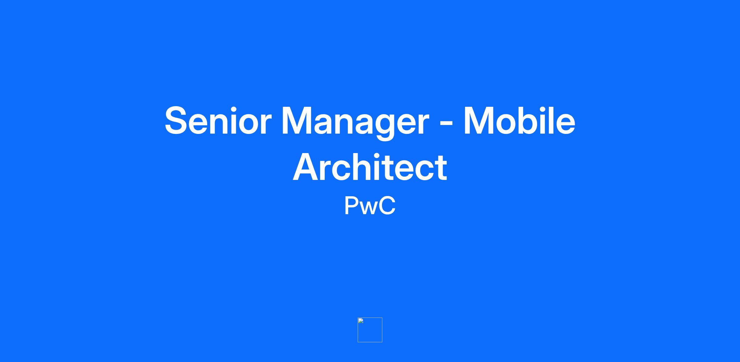 Line of Service Advisory Industry/Sector Not Applicable Specialism Core Product Strategy Management Level Senior Manager Job Description & Summary About the role: Across Financial Services, clients are seeking support to reimagine the digital experiences they deliver to their customers with a keen focus on their mobile channel. Our Customer-led Transformation team is seeking an experienced mobile architect to be a key member of our team that will support sales activity, lead mobile architecture design during discovery phases and oversee engineering teams during our implementations. In this role, you will have the opportunity to lead the vision, strategy, and delivery of enterprise-grade mobile solutions across Android, iOS, and cross-platform (e.g. React Native). You will define architecture principles and patterns, translate business needs into scalable technical designs, and ensure secure, highly available, and user-centric mobile products. The role combines hands-on technical leadership with governance, stakeholder communication, and team mentorship. You will champion engineering excellence, drive a cloud-first approach and continuously evaluate emerging technologies to enhance products and platforms. What your days will look like: You are a strategic engineering leader with deep expertise in mobile architecture and delivery across native (Android, iOS) and cross-platform (React Native, Flutter) technologies. You combine technical depth with commercial acumen to help financial institutions modernise their customer and colleague experiences through secure, scalable, and compliant mobile platforms. You define and govern mobile architecture blueprints that balance innovation, resilience, and cost-effectiveness across complex client environments. You lead multidisciplinary teams—both internal and client-side—to deliver robust mobile capabilities that meet stringent regulatory, security, and performance standards. You set the direction for architecture patterns, engineering practices, and delivery frameworks, ensuring consistency and quality across multiple concurrent programmes. You are adept at diagnosing delivery challenges, introducing scalable DevOps and CI/CD models, and embedding disciplined quality and documentation standards. You engage credibly with senior client stakeholders—CIOs, CTOs, and Heads of Digital—to translate business goals into actionable technology roadmaps and investment cases. You are comfortable leading solution design discussions, shaping RFP responses, and guiding clients through complex technology choices with clarity and confidence. This role is for you if: You are a strategic engineering leader with deep expertise in mobile architecture and delivery across native (Android, iOS) and cross-platform (React Native, Flutter) technologies. You combine technical depth with commercial acumen to help financial institutions modernise their customer and colleague experiences through secure, scalable, and compliant mobile platforms. You define and govern mobile architecture blueprints that balance innovation, resilience, and cost-effectiveness across complex client environments. You lead multidisciplinary teams—both internal and client-side—to deliver robust mobile capabilities that meet stringent regulatory, security, and performance standards. You set the direction for architecture patterns, engineering practices, and delivery frameworks, ensuring consistency and quality across multiple concurrent programmes. You are adept at diagnosing delivery challenges, introducing scalable DevOps and CI/CD models, and embedding disciplined quality and documentation standards. You engage credibly with senior client stakeholders—CIOs, CTOs, and Heads of Digital—to translate business goals into actionable technology roadmaps and investment cases. You are comfortable leading solution design discussions, shaping RFP responses, and guiding clients through complex technology choices with clarity and confidence. What you’ll receive from us: No matter where you may be in your career or personal life, our benefits are designed to add value and support, recognising and rewarding you fairly for your contributions. We offer a range of benefits including empowered flexibility and a working week split between office, home and client site; private medical cover and 24/7 access to a qualified virtual GP; six volunteering days a year and much more. Education (if blank, degree and/or field of study not specified) Degrees/Field of Study required: Degrees/Field of Study preferred: Certifications (if blank, certifications not specified) Required Skills Optional Skills Accepting Feedback, Accepting Feedback, Active Listening, Analytical Thinking, Client Management, Coaching and Feedback, Communication, Creativity, Deliverable Planning, Delivery Management, Developing User Stories, Embracing Change, Emotional Regulation, Empathy, Inclusion, Influence, Intellectual Curiosity, IT Business Strategy, IT Consulting, IT Infrastructure, IT Service Management (ITSM), IT Systems Development, Leading Design Workshops, Learning Agility, Market Research {+ 30 more} Desired Languages (If blank, desired languages not specified) Travel Requirements Up to 60% Available for Work Visa Sponsorship? Yes Government Clearance Required? No Job Posting End Date Are you ready to make a difference? Want to unlock new value by applying your unique perspective and talents? You can grow exponentially at PwC. Here, you can uncover hidden talents, build lifelong relationships rooted in trust and empathy and turn challenges into opportunities for innovation. We’ll help you grow your skills through challenging, meaningful work so you can go further.