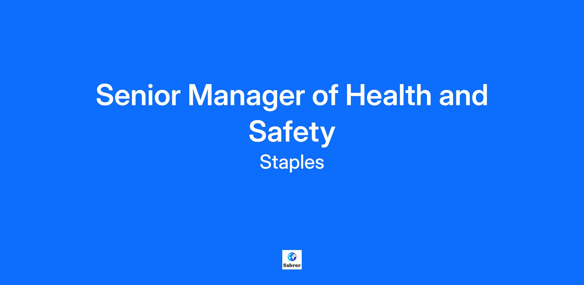The Senior Manager of Health and Safety plays a critical leadership role in shaping and executing the health and safety strategy across Staples Canada's Business Units. This position requires a seasoned professional with deep expertise in occupational health and safety, regulatory compliance, and risk mitigation. The role is responsible for fostering a culture of safety, ensuring alignment with provincial and federal legislation, and driving continuous improvement in safety practices across diverse environments—including retail stores, warehouses, corporate and delivery operations. Strong leadership, conflict resolution, and relationship-building skills are essential to influence stakeholders, support incident prevention and investigation, and promote a safe and healthy workplace for all employees.