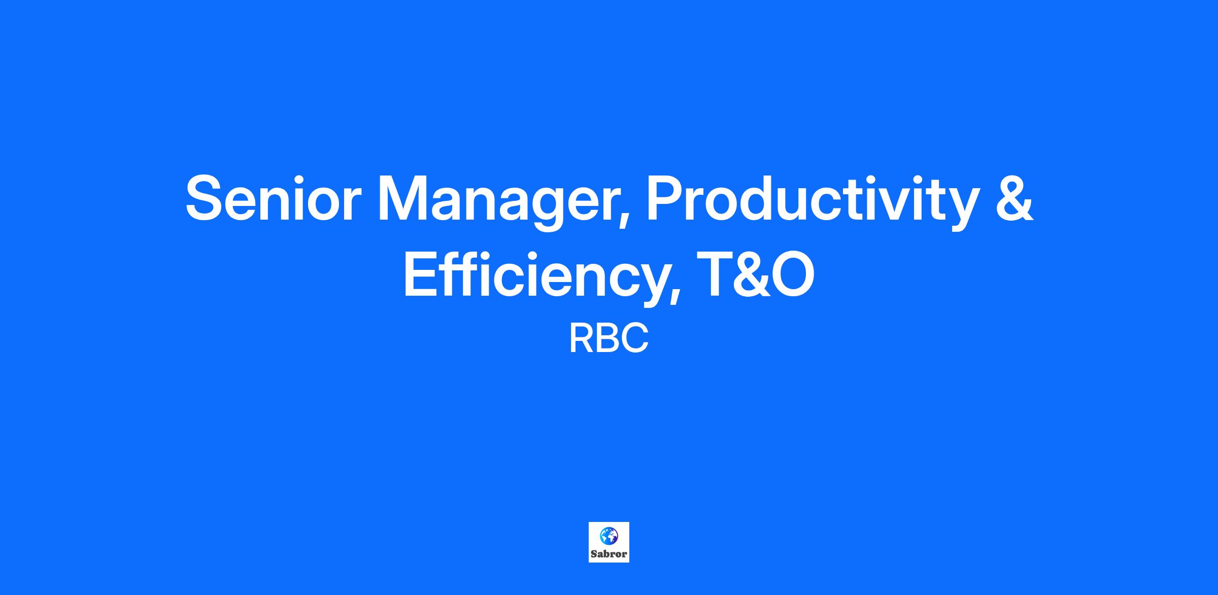 Senior Manager, Productivity & Efficiency, T&O