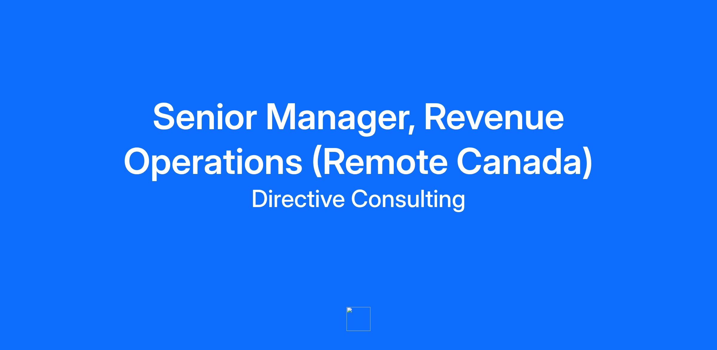 Senior Manager, Revenue Operations (Remote Canada)
