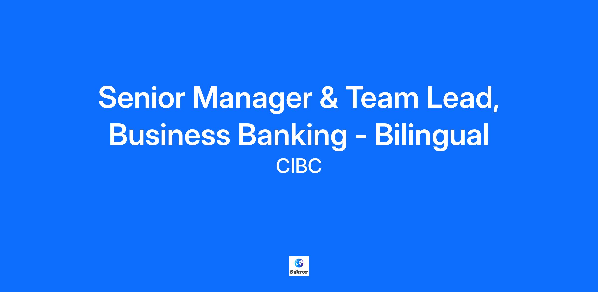 We’re building a relationship-oriented bank for the modern world. We need talented, passionate professionals who are dedicated to doing what’s right for our clients. At CIBC, we embrace your strengths and your ambitions, so you are empowered at work. Our team members have what they need to make a meaningful impact and are truly valued for who they are and what they contribute. To learn more about CIBC, please visit CIBC.com What you’ll be doing As the Senior Manager & Team Lead, Business Banking you’ll responsible for building, developing and leading a team of Relationship Managers, Business Advisors and/or Associate Business Advisors to meet the business needs of our high complexity business clients and drive growth by providing advice/services on a broad range of business products. Along with your team, you’ll be accountable for growing the portfolio of business banking clients by proactively developing new business, credit and cash management opportunities in the community, including end to end credit management, to meet/exceed the portfolio financial plan. You’ll utilize your understanding of what is important to our business clients and ensure we provide advice and the appropriate products and solutions to meet our clients goals. You’ll build a capable and motivated team through proactive talent management, create a positive work environment, ensure effective operations, processes, controls and compliance, and promote CIBC to build a strong reputation in the market resulting in superior client experiences and growth that exceeds our peers. At CIBC we enable the work environment most optimal for you to thrive in your role. Details on your work arrangement (proportion of on-site and remote work) will be discussed at the time of your interview. How you’ll succeed Leadership - Provide active leadership and hands-on coaching to a team of Relationship Managers, Business Advisors and/or Associate Business Advisors in executing and managing client relationships, including the delivery of credit and cash management services. Create an environment which fosters an exceptional relationship culture, supports partnering behaviour, and capitalizes on individuals’ expertise and knowledge of Business Banking services to provide “best in class” service and overall relationship management to our clients. Build team and individual capabilities to ensure employees are capable of performing to job requirement standards including but not limited to credit skills. Relationship Management – Develop new client relationships through business development activities leveraging referral sources, existing clients and centres of influence. Actively monitor and manage these relationships by fully understanding our client’s goals, objectives and status of client’s business. Lead business development activities and represent CIBC in the community directly to ensure relationships are developed, solidified and fostered. Attend and participate in trade shows, seminars, luncheons, community events. Collaboration - Support a culture of collaboration across the community of banking centres and with internal partners so that we bring the best of CIBC to clients to support their financial goals. Commit to building a profile in the local business community in order to leverage that profile into effective working relationships with new and existing clients and internal partners. Credit risk management - Ensure appropriate due diligence and management of credit quality and risk within existing segment thresholds and provide early detection of deteriorating files. Manage all dealings internally and with clients in a manner consistent with the standards prescribed by CIBC policies and procedures. Act as a point of escalation to resolve any client and credit issues with internal partners, as appropriate. Who you are You are a bold and authentic leader. You're passionate about developing and coaching to bring out the best in people with experience in leading diverse, high performing teams. You demonstrate experience in Business Banking or Commercial Banking in credit structuring, cash management, proven business development skills with a track record of success, advanced knowledge of risk and credit portfolio management. You put our clients first. You have well-developed client and relationship management skills. You engage with purpose to find the right solutions. You act like an owner. You thrive when you're empowered to take initiative, go above and beyond, and deliver results. You have an established profile in the local business community. You have knowledge of a diverse marketplace and the needs of local businesses. You have completed an undergraduate degree/diploma in Business, Finance, Accounting, or a related field. Values matter to you. You bring your real self to work and you live our values - trust, teamwork, and accountability. You're fluent in French and English to serve our clients in the community. #LI-TA What CIBC Offers At CIBC, your goals are a priority. We start with your strengths and ambitions as an employee and strive to create opportunities to tap into your potential. We aspire to give you a career, rather than just a paycheck. We work to recognize you in meaningful, personalized ways including a competitive salary, incentive pay, banking benefits, a benefits program*, defined benefit pension plan*, an employee share purchase plan, a vacation offering, wellbeing support, and MomentMakers, our social, points-based recognition program. Our spaces and technological toolkit will make it simple to bring together great minds to create innovative solutions that make a difference for our clients. We cultivate a culture where you can express your ambition through initiatives like Purpose Day; a paid day off dedicated for you to use to invest in your growth and development. *Subject to plan and program terms and conditions What you need to know CIBC is committed to creating an inclusive en
