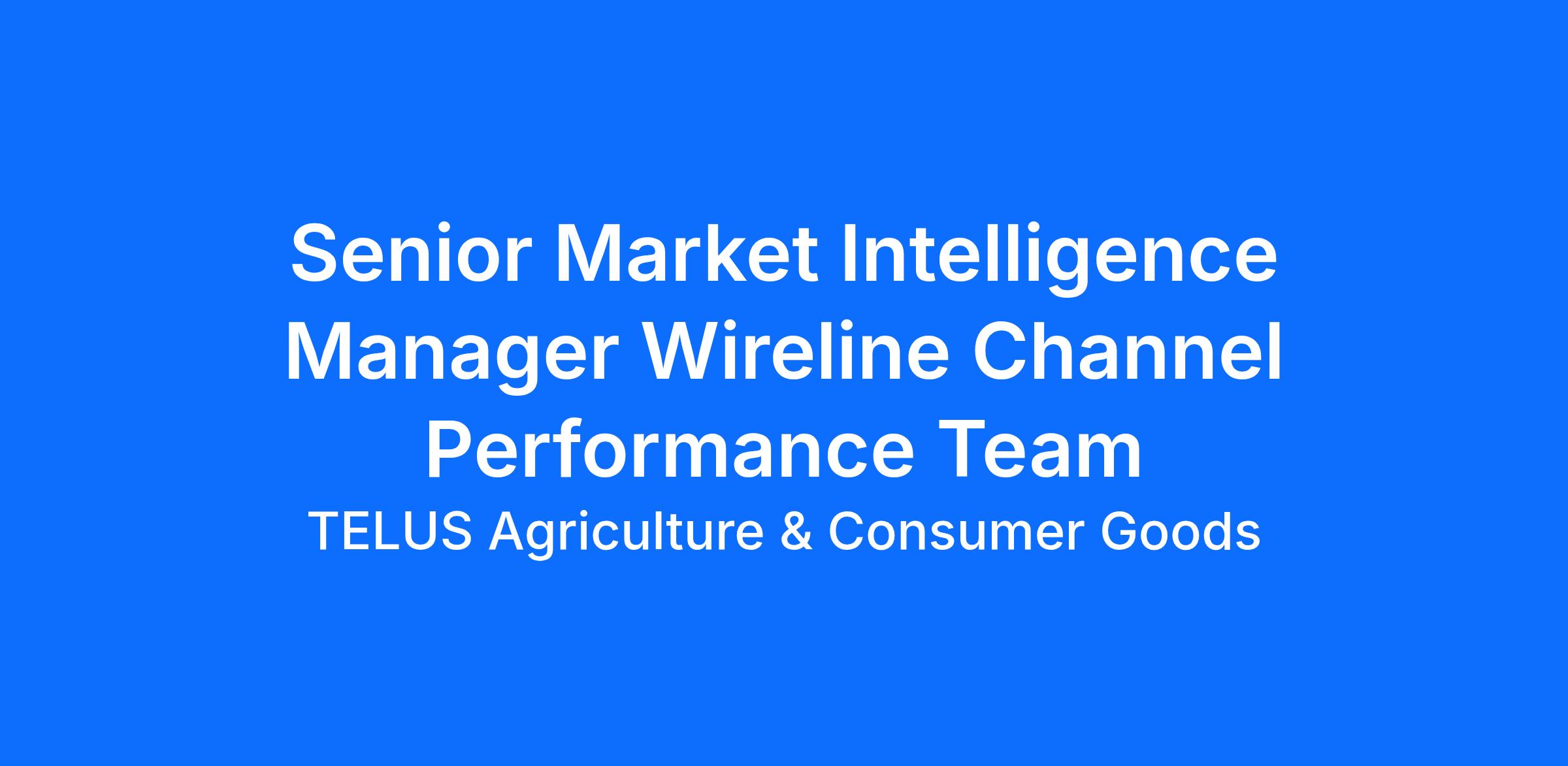 Senior Market Intelligence Manager Wireline Channel Performance Team
