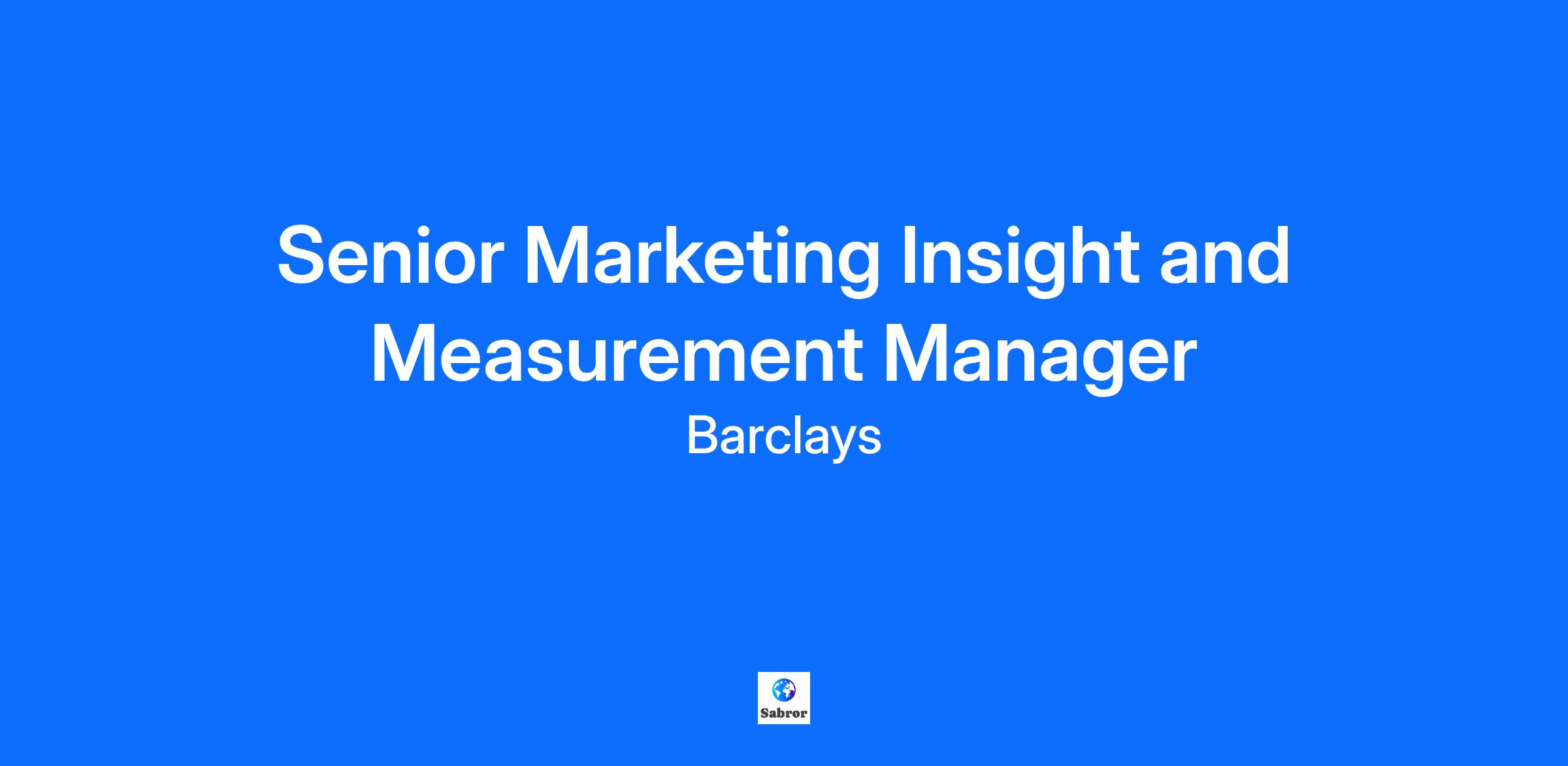 Job Description Purpose of the role To develop and implement marketing strategies to promote brand, products, and services across various markets Accountabilities Development and implementation of marketing strategies and delivery that aligns with the banks business objectives and are informed by market research, customer needs and competitive landscape. Collaboration with product development, sales, and other departments to align marketing efforts with overall business objectives, to achieve specific, well defined outcomes, as needed. Development of compelling and targeted content for various marketing channels, including print, media and related collateral, if needed. Analysis of data to make informed decisions and optimize marketing strategies, use of data analytics tools to measure and report on the performance of marketing campaigns. Management of the marketing budget, allocating resources to maximise ROI. Defines marketing vision, sets goals, clarifies objectives and works across organisations to achieve specific, well defined outcomes. Vice President Expectations To contribute or set strategy, drive requirements and make recommendations for change. Plan resources, budgets, and policies; manage and maintain policies/ processes; deliver continuous improvements and escalate breaches of policies/procedures.. If managing a team, they define jobs and responsibilities, planning for the department’s future needs and operations, counselling employees on performance and contributing to employee pay decisions/changes. They may also lead a number of specialists to influence the operations of a department, in alignment with strategic as well as tactical priorities, while balancing short and long term goals and ensuring that budgets and schedules meet corporate requirements.. If the position has leadership responsibilities, People Leaders are expected to demonstrate a clear set of leadership behaviours to create an environment for colleagues to thrive and deliver to a consistently excellent standard. The four LEAD behaviours are: L – Listen and be authentic, E – Energise and inspire, A – Align across the enterprise, D – Develop others.. OR for an individual contributor, they will be a subject matter expert within own discipline and will guide technical direction. They will lead collaborative, multi-year assignments and guide team members through structured assignments, identify the need for the inclusion of other areas of specialisation to complete assignments. They will train, guide and coach less experienced specialists and provide information affecting long term profits, organisational risks and strategic decisions.. Advise key stakeholders, including functional leadership teams and senior management on functional and cross functional areas of impact and alignment. Manage and mitigate risks through assessment, in support of the control and governance agenda. Demonstrate leadership and accountability for managing risk and strengthening controls in relation to the work your team does. Demonstrate comprehensive understanding of the organisation functions to contribute to achieving the goals of the business. Collaborate with other areas of work, for business aligned support areas to keep up to speed with business activity and the business strategies. Create solutions based on sophisticated analytical thought comparing and selecting complex alternatives. In-depth analysis with interpretative thinking will be required to define problems and develop innovative solutions. Adopt and include the outcomes of extensive research in problem solving processes. Seek out, build and maintain trusting relationships and partnerships with internal and external stakeholders in order to accomplish key business objectives, using influencing and negotiating skills to achieve outcomes. All colleagues will be expected to demonstrate the Barclays Values of Respect, Integrity, Service, Excellence and Stewardship – our moral compass, helping us do what we believe is right. They will also be expected to demonstrate the Barclays Mindset – to Empower, Challenge and Drive – the operating manual for how we behave. Join us as a Senior Marketing Insight and Measurement Manager within Planning and Operations at Barclays UK, where you will lead the measurement and insight strategy that shapes how we plan and execute marketing. In this pivotal role, you will leverage data-driven analysis, market trends, and competitor insights to inform strategic decisions and guide investment across Barclays UK Marketing. Working closely with our Decision Intelligence team, you will evaluate marketing effectiveness, understand drivers of performance, and ensure our resources deliver maximum impact. As we move towards a more customer-centric planning approach, you will play a key role in translating customer and market understanding into actionable strategies that enhance both our marketing performance and customer outcomes, ensuring that our multimillion budget is spent in the right place. To be successful as a Senior Marketing Insight and Measurement Manager, you should have: Excellent analytical skills with the ability to interpret complex data, identify trends, and present insights clearly to stakeholders. Experience collaborating closely with Decision Intelligence teams and applying macro marketing trend insights to inform strategy. Solid understanding of the marketing landscape, gained through experience within a marketing function. Proven experience in one or more of the following: Media/Marketing Mix Modelling (MMM), Multi-Touch Attribution (MTA), or Econometrics Modelling. Proficient in Excel, with the ability to manage and analyse large data sets effectively. Skilled in managing relationships with external agencies and confident engaging with senior stakeholders to influence decisions. Some other highly valued skills may include: Experience working within financial services. You may be assessed on the key critical skills 