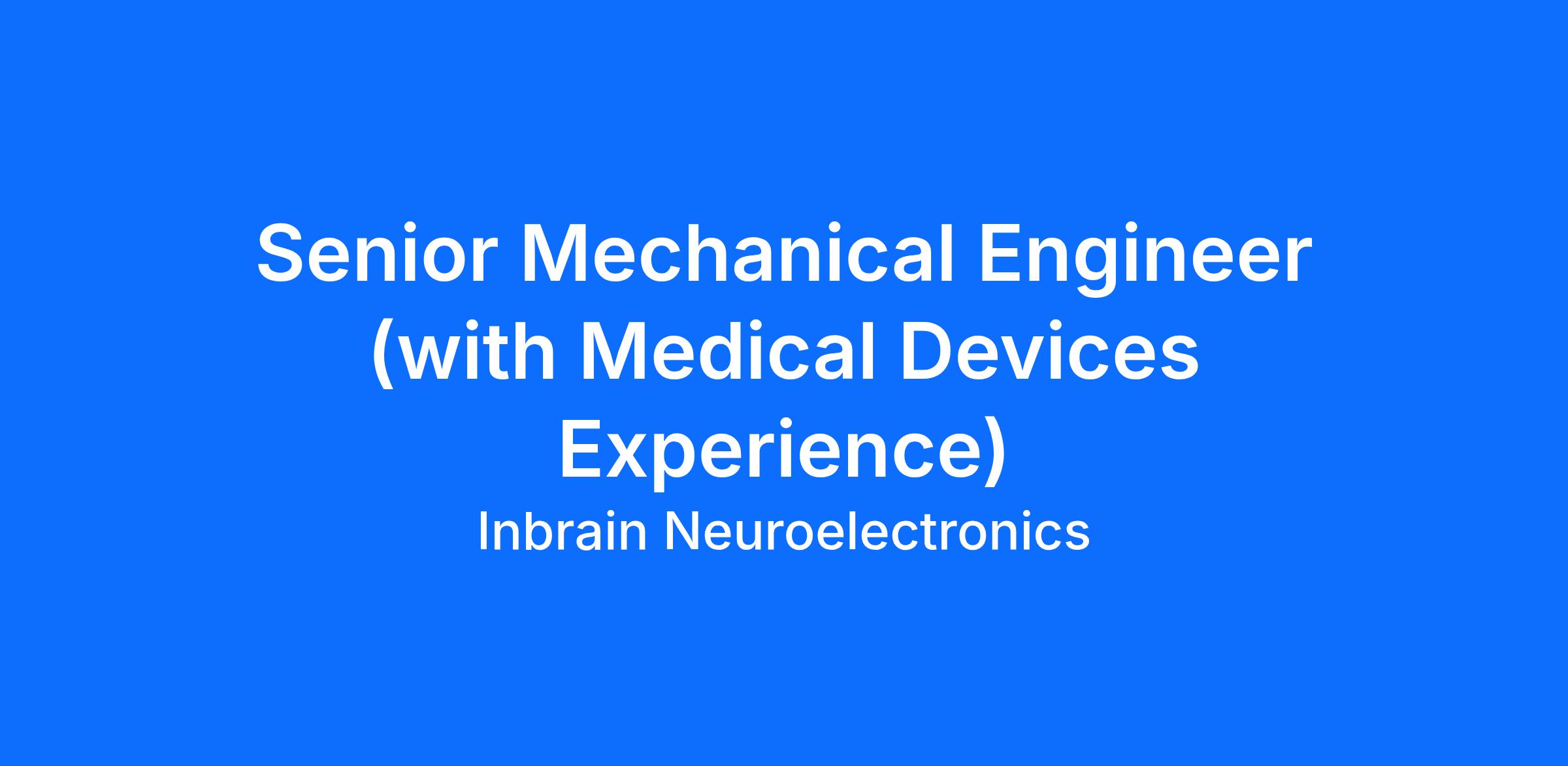 Senior Mechanical Engineer (with Medical Devices Experience)