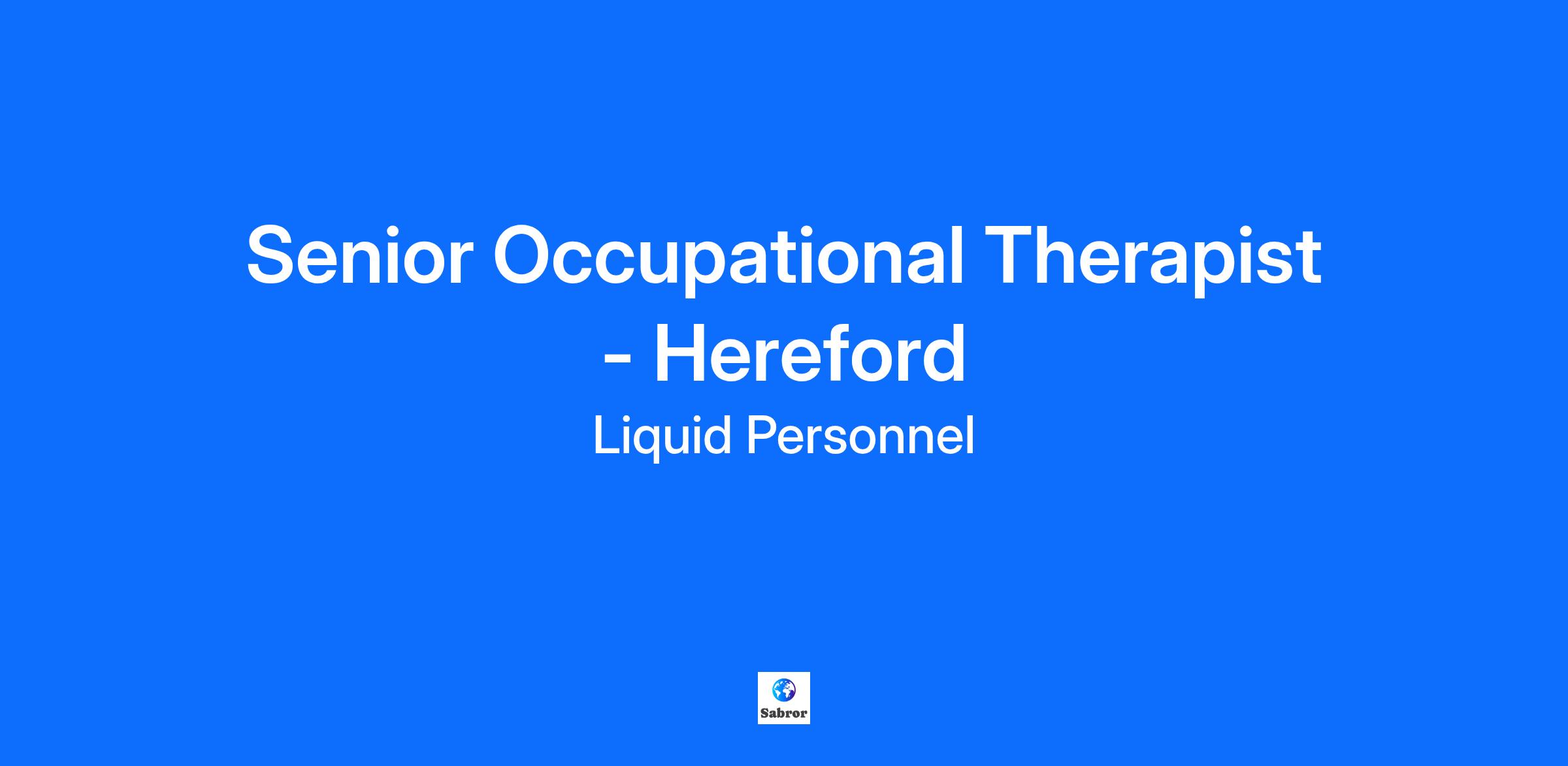 Job Title: Senior Occupational Therapist - Hereford Location: Hereford Pay Rate: £29.02 per hour Job Description: Liquid Personnel is recruiting a Senior Occupational Therapist for its client based in Hereford. What will your responsibilities be? Work as part of a wider Occupational Therapy team supporting a diverse service user group across rural, town, village, and city settings Supervise a small group of Occupational Therapy staff while maintaining a small caseload of complex cases Handle daily referral enquiries and participate in regular stakeholder meetings Undertake audits and contribute to service development and quality assurance Mentor staff and students, manage performance, and uphold professional and organisational standards Champion key specialisms such as Moving and Handling, Adaptations, Technology Enabled Living, and Community Equipment Store clinical leadership Benefits: Opportunities for specialism and leadership roles Supportive team environment Varied and meaningful workload across diverse settings Qualifications & Experience: To be successful in this role you must have, Qualified Occupational Therapist with HCPC registration Strong interpersonal, communication, and organisational skills Experience in supervision and complex case management Commitment to ongoing professional development and service improvement Why Liquid Personnel? Free DBS and compliance service Twice weekly payroll and ‘Faster Pay’ service, getting you paid more quickly Access to exclusive roles that aren’t available from other agencies Free access to Liquid’s exclusive social work training and CPD portal Your own dedicated consultant with extensive social work knowledge Access to a wide selection of social work positions across the UK “Refer a Friend” bonus – get £500 for each social worker you refer who we successfully place* “Find your own job” bonus – get £250 for bringing your own position to us * Liquid Personnel is an equal opportunities employer. Liquid Personnel Ltd is acting as an Employment Business in relation to this vacancy. * Terms and conditions apply to our bonus schemes. Reasonable Adjustments: If you consider yourself to have a disability or require any reasonable adjustment during the recruitment process or within the workplace, please highlight this at the earliest opportunity by contacting our team. With this information, we will provide appropriate support to you throughout the process and into your work placement. We are unable to support or accept applications from candidates who are residents within the Red or Amber list of the Code of practice for the international recruitment of health and social care personnel in England, based on the World Health Organisation (WHO) Workforce Support and Safeguard List. BH - 191378 GH - 32069