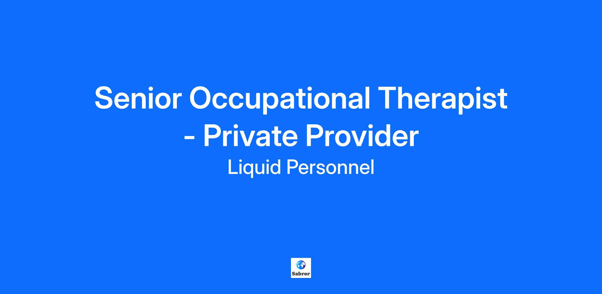 Job Title: Senior Occupational Therapist - Private Provider Location: Leeds Salary: Competitive Contract Type: Permanent | Full-time Job Description: Liquid Personnel is recruiting on behalf of a well-regarded private healthcare provider in the Leeds area for a Senior Occupational Therapist to join their hospital-based multidisciplinary team. This is an excellent opportunity for an experienced OT looking to advance their career in a supportive, clinically driven environment. What will your responsibilities be? In this role, you will, Deliver high-quality occupational therapy interventions for adults with complex mental health needs Conduct functional assessments and develop personalised treatment plans Collaborate with a multidisciplinary team including psychologists, nurses, and support staff Support service users in achieving independence and recovery goals Supervise junior staff and contribute to service development and clinical leadership Maintain accurate clinical records and contribute to audit and quality improvement initiatives Qualifications & Experience: To be successful in this role you must have, Degree/Diploma in Occupational Therapy HCPC registration Minimum 2 years’ post-qualification experience, ideally in mental health or hospital settings Strong clinical reasoning and leadership skills Experience supervising or mentoring junior staff is desirable Commitment to person-centred care and evidence-based practice Referral Bonus: Refer a friend and receive a bonus – contact me for details! Reasonable Adjustments: If you consider yourself to have a disability or require any reasonable adjustment during the recruitment process or within the workplace, please highlight this at the earliest opportunity by contacting our team. With this information, we will provide appropriate support to you throughout the process and into your work placement. We are unable to support or accept applications from candidates who are residents within the Red or Amber list of the Code of practice for the international recruitment of health and social care personnel in England, based on the World Health Organisation (WHO) Workforce Support and Safeguard List. BH - 193225 GH - 32713