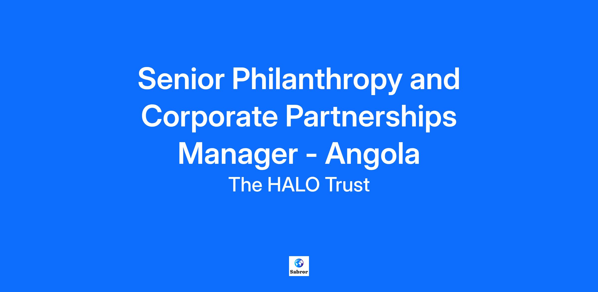 Role: Senior Philanthropy and Corporate Partnerships Manager – Angola