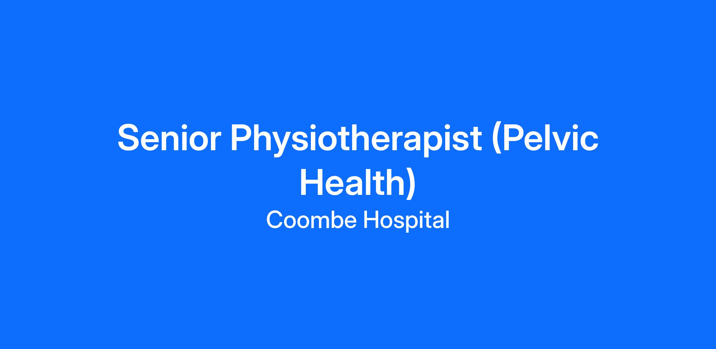 Senior Physiotherapist (Pelvic Health), Permanent, Part-time (0.63 WTE)