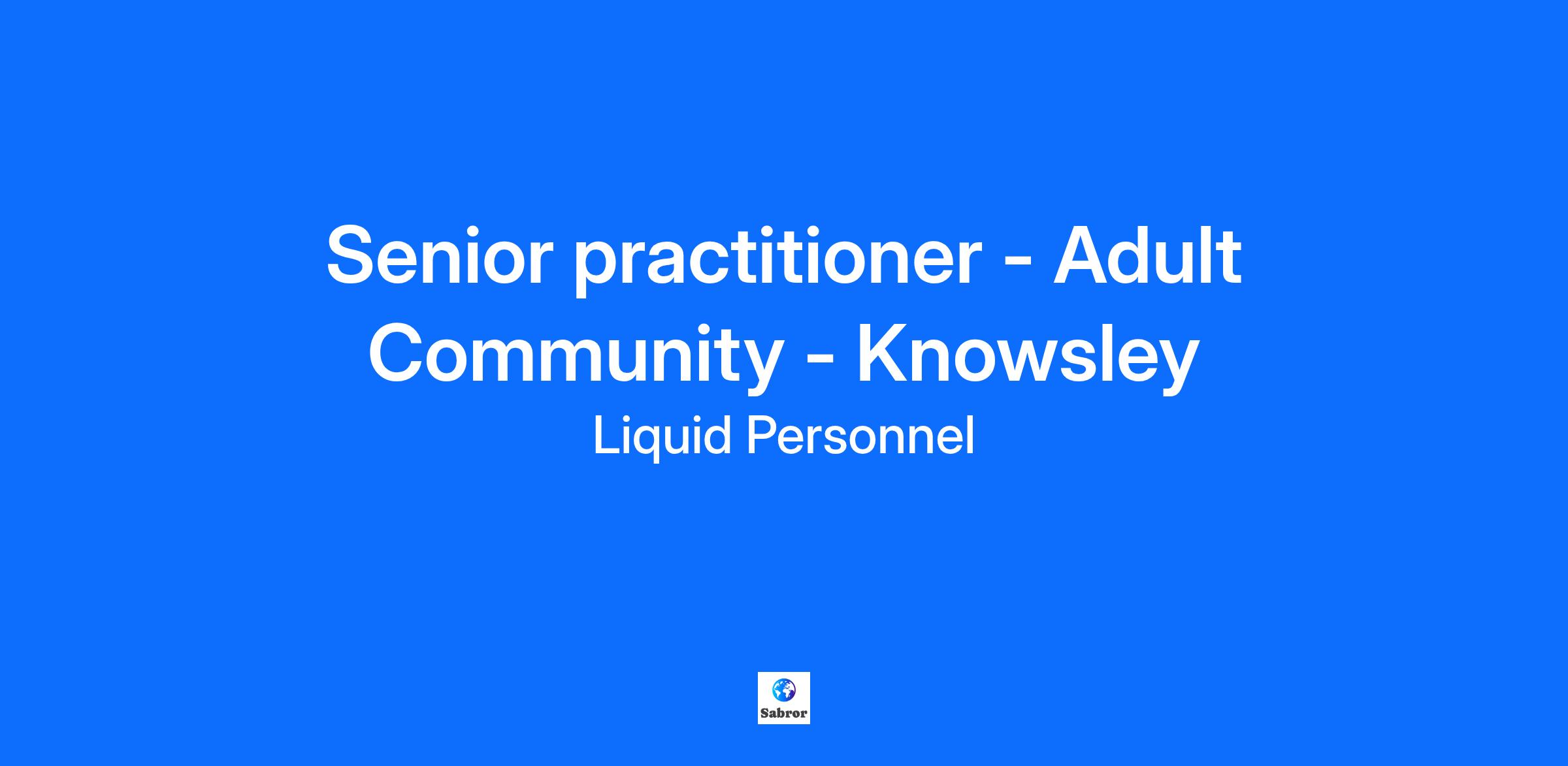Job Title: Qualified social worker | Senior Practitioner Location: Knowsley Rate: £35 per hour Liquid Personnel is currently recruiting for an experienced Senior practitioner to join a Community Team based in Knowsley. What will your responsibilities be? As a senior practitioner, you will support the Team Manager in team operations and deputise as needed. In addition, you would need to screen referrals, allocate cases, and complete s42 enquiries and Provide guidance to team members and ensure high-quality records. You would also need to promote service user independence and safeguard vulnerable individuals. Benefits: Great rate of pay £35 per hour Remote/hybrid working available Great reputation and links with health partners Supportive team with great training in place Qualifications and Experience: Social Work England registration Eligible to work in the UK Hold a full UK license Post-qualified experience Degree level or equivalent in Social Work How to Apply: If this job interests you, you can apply directly or contact 0345 241 9590. Register interest . Why Liquid Personnel? New ‘Faster Pay’ service. Twice weekly payroll. Free DBS and compliance service. Access to exclusive roles. Free access to social work training and CPD portal. Dedicated consultant with extensive social work knowledge. Wide selection of social work positions across the UK. “Refer a Friend” bonus of £500. “Find your own job” bonus of £250. Additional Information: Liquid Personnel is an equal opportunities employer. We are unable to support or accept applications from candidates who are residents within the Red or Amber list of the Code of practice for the international recruitment of health and social care personnel in England, based on the World Health Organisation (WHO) Workforce Support and Safeguard List. GH - 27334 BH - 187243