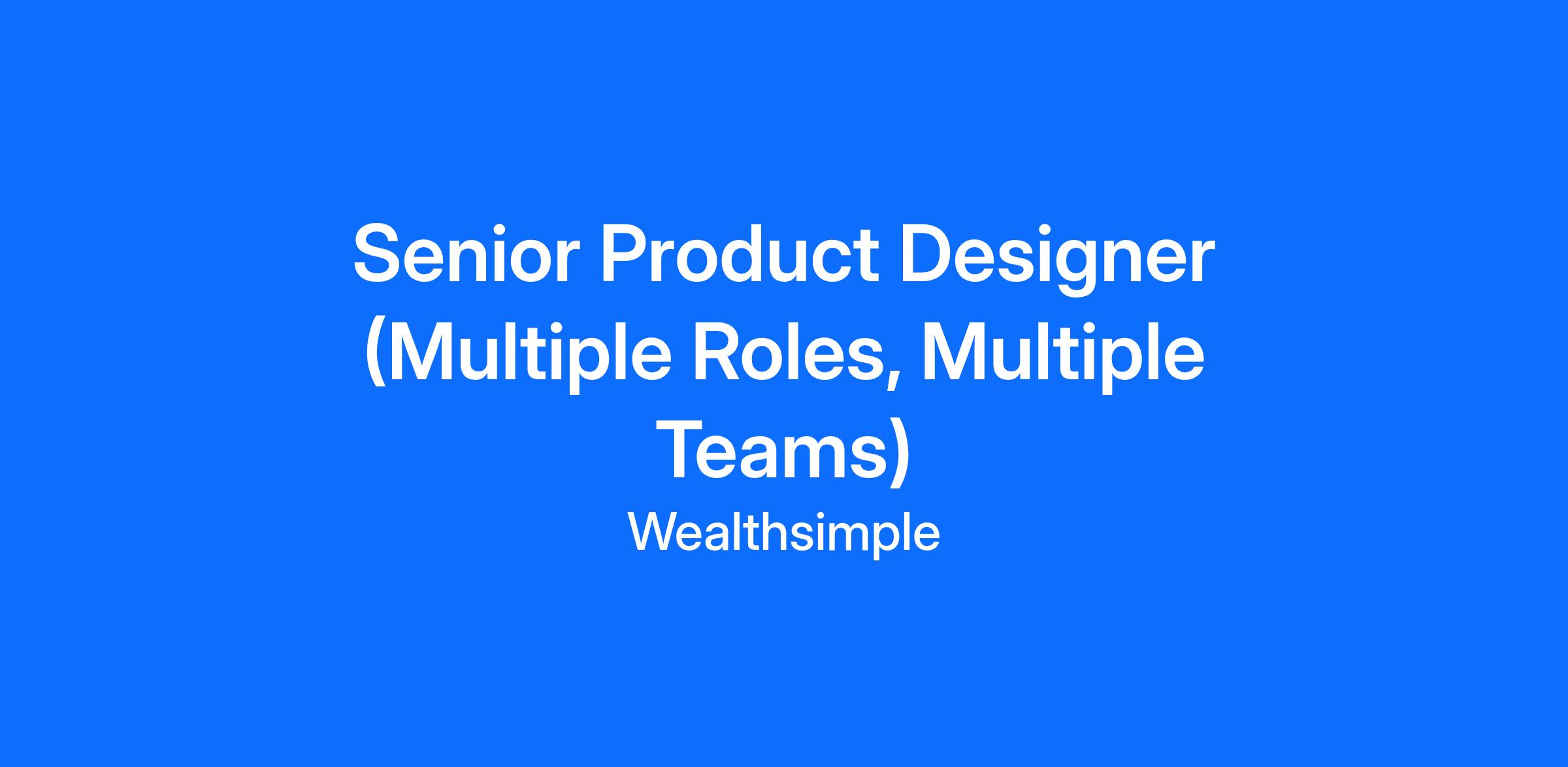 Design is a strategic lever at Wealthsimple — we don’t just make things beautiful, we help shape what gets built. We're growing our Product Design team and hiring both Senior and Staff Product Designers across multiple product areas, including Investing, Banking, and more. Rather than filling a single role, we’re looking for outstanding designers who want to help us define the future of personal finance in Canada. When you apply, we’ll explore where your strengths, experience, and interests align best across our teams.