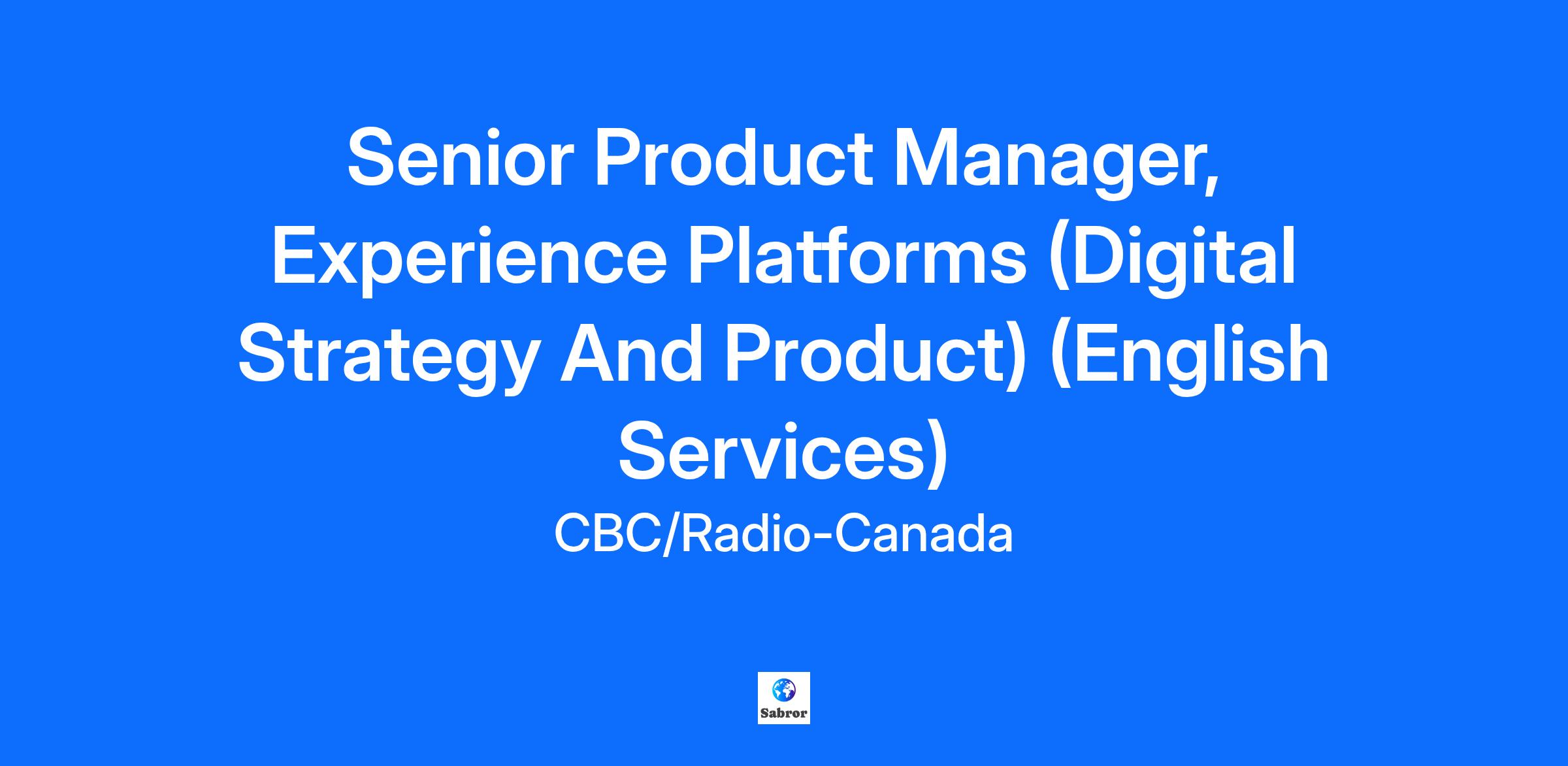 Senior Product Manager, Experience Platforms (Digital Strategy And Product) (English Services)