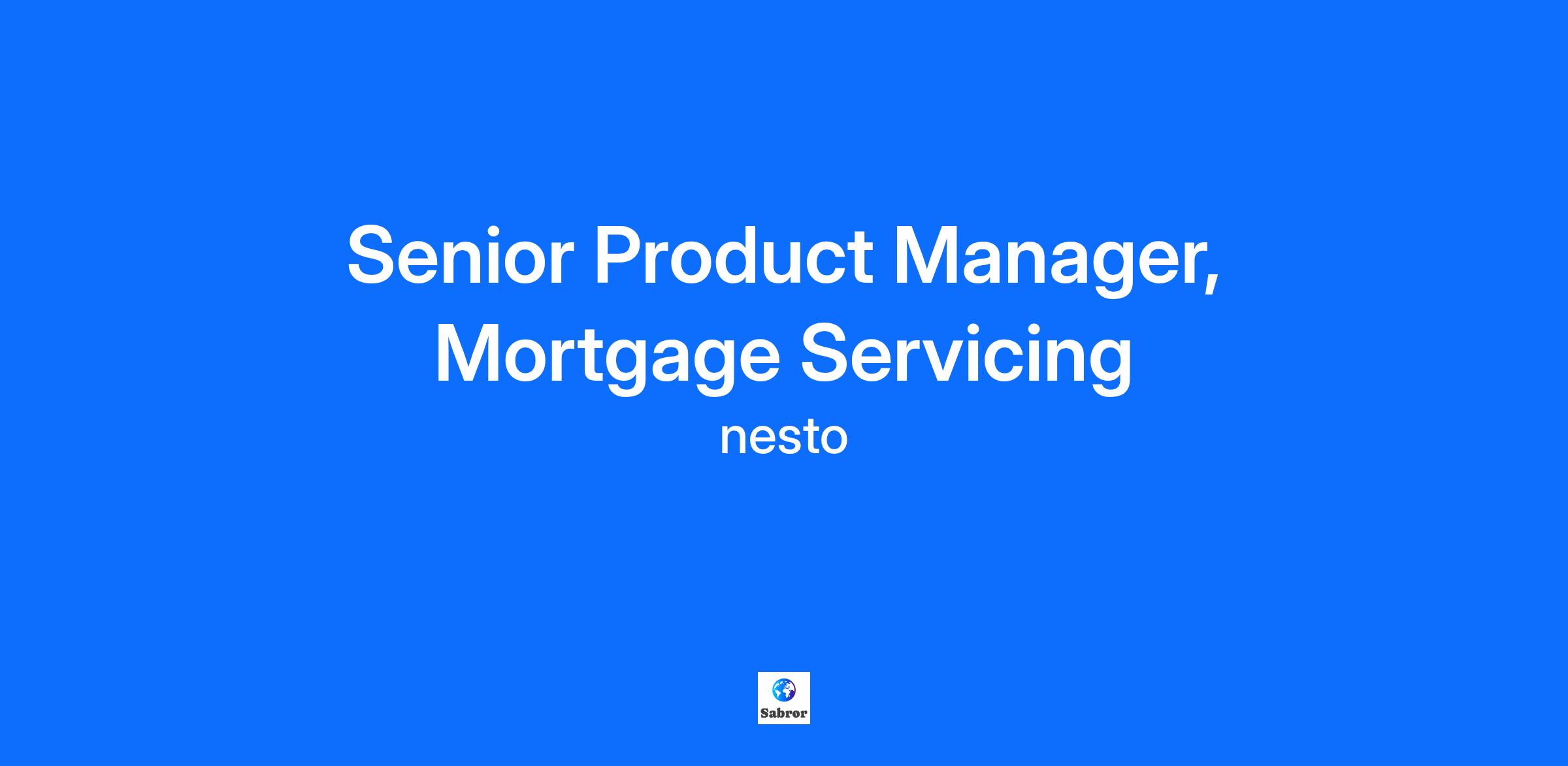 Senior Product Manager, Mortgage Servicing
