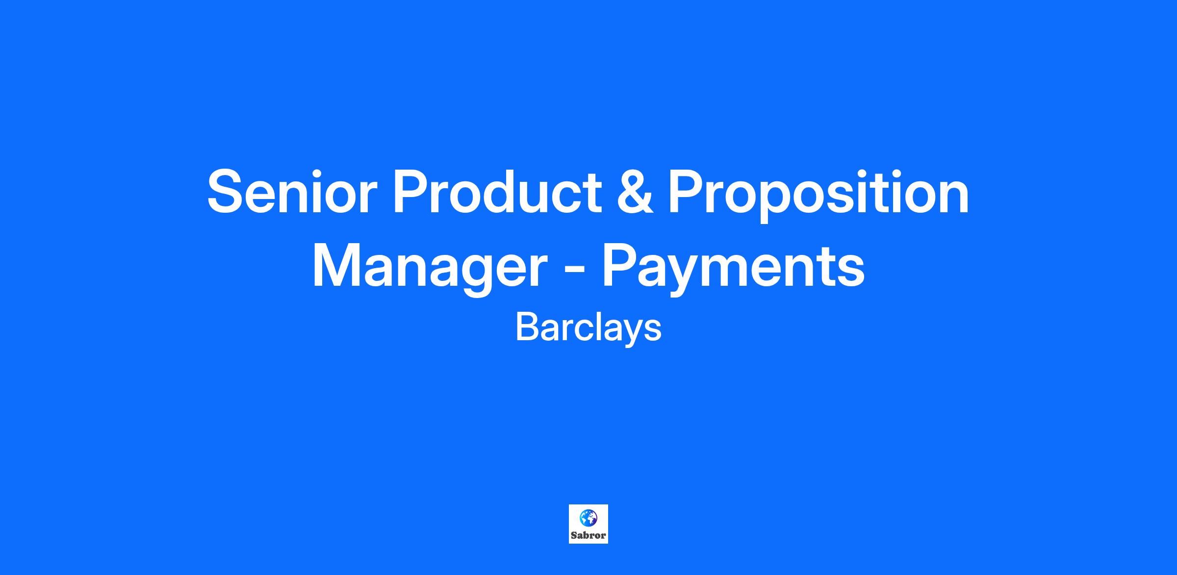 Job Description Purpose of the role To manage and develop existing and new products and/or services; and where applicable, ownership of related customer and colleague journeys, develops the product strategy, drive change through Barclays execution teams, make key decisions in the product lifecycle and own associated outcomes for customers, colleagues and the bank, achieved through appropriate service level agreements, regulatory compliance, risk management and controls. Accountabilities Development of customer level strategies & solutions that are tailored to customers’ needs. Subject Matter Expert in the applicable Product/Proposition team and be able to confidently guide and advise stakeholders at all levels in the Bank on the application of existing and new products/propositions and related customer and colleague journeys. Development of product propositions, and/or service strategy, define the priorities for delivering the outcomes needed to deliver the strategy and lead execution of the priorities. Development of different commercial and business models through a strong understanding of the financial drivers of the P&L for the relevant segment/ proposition/ journey. Evaluation of the technical feasibility, legal compliance, and potential risks associated with the development and launch of the new product. Monitoring of market trends and analysis feedback from internal employees and target customers through prototypes, user testing sessions, and beta programs to identify areas for improvement to refine the product / process before launch. Management of comprehensive launch plans and technical deployments for products that establish rollout timelines, marketing strategies, training initiatives and communication channels to promote the launch new products effectively. Monitoring of key metrics such as adoption rates, usage patterns, customer satisfaction (including complaints), and revenue generation to assess the product's performance against set goals. Vice President Expectations To contribute or set strategy, drive requirements and make recommendations for change. Plan resources, budgets, and policies; manage and maintain policies/ processes; deliver continuous improvements and escalate breaches of policies/procedures.. If managing a team, they define jobs and responsibilities, planning for the department’s future needs and operations, counselling employees on performance and contributing to employee pay decisions/changes. They may also lead a number of specialists to influence the operations of a department, in alignment with strategic as well as tactical priorities, while balancing short and long term goals and ensuring that budgets and schedules meet corporate requirements.. If the position has leadership responsibilities, People Leaders are expected to demonstrate a clear set of leadership behaviours to create an environment for colleagues to thrive and deliver to a consistently excellent standard. The four LEAD behaviours are: L – Listen and be authentic, E – Energise and inspire, A – Align across the enterprise, D – Develop others.. OR for an individual contributor, they will be a subject matter expert within own discipline and will guide technical direction. They will lead collaborative, multi-year assignments and guide team members through structured assignments, identify the need for the inclusion of other areas of specialisation to complete assignments. They will train, guide and coach less experienced specialists and provide information affecting long term profits, organisational risks and strategic decisions.. Advise key stakeholders, including functional leadership teams and senior management on functional and cross functional areas of impact and alignment. Manage and mitigate risks through assessment, in support of the control and governance agenda. Demonstrate leadership and accountability for managing risk and strengthening controls in relation to the work your team does. Demonstrate comprehensive understanding of the organisation functions to contribute to achieving the goals of the business. Collaborate with other areas of work, for business aligned support areas to keep up to speed with business activity and the business strategies. Create solutions based on sophisticated analytical thought comparing and selecting complex alternatives. In-depth analysis with interpretative thinking will be required to define problems and develop innovative solutions. Adopt and include the outcomes of extensive research in problem solving processes. Seek out, build and maintain trusting relationships and partnerships with internal and external stakeholders in order to accomplish key business objectives, using influencing and negotiating skills to achieve outcomes. All colleagues will be expected to demonstrate the Barclays Values of Respect, Integrity, Service, Excellence and Stewardship – our moral compass, helping us do what we believe is right. They will also be expected to demonstrate the Barclays Mindset – to Empower, Challenge and Drive – the operating manual for how we behave. Join us Senior Product and Proposition Manager - Payments at Barclays where you lead critical initiatives that strengthen resilience across Domestic, International and Open Banking Payments. This is a high-profile role reporting directly to the Head of Payments, where you’ll make a tangible impact on customer experience and operational excellence. You will lead across two key areas which will help reduce complaints, improve customer satisfaction, and position payments as a strategic lever for growth: Strategic Resilience Agenda Partner with the central resilience team and Payments Directors to design contingency solutions, processes, and playbooks. Drive simulations and scenario planning to inform improvement strategies. Incident Response and Reduction Build and enhance our Business-As-Usual response to payment-related incidents. Collaborate with Technology, Operations and Product t