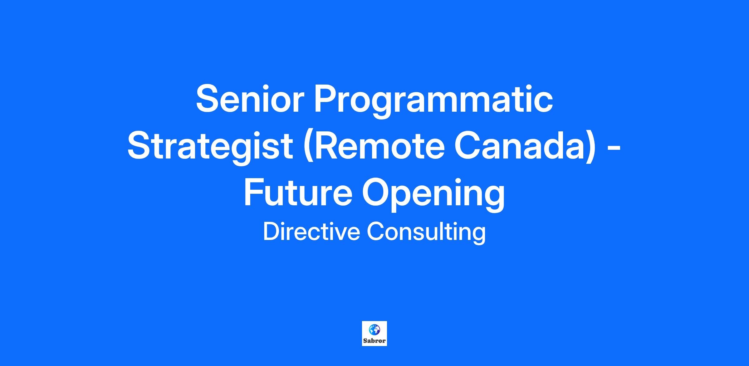 Senior Programmatic Strategist (Remote Canada) - Future Opening