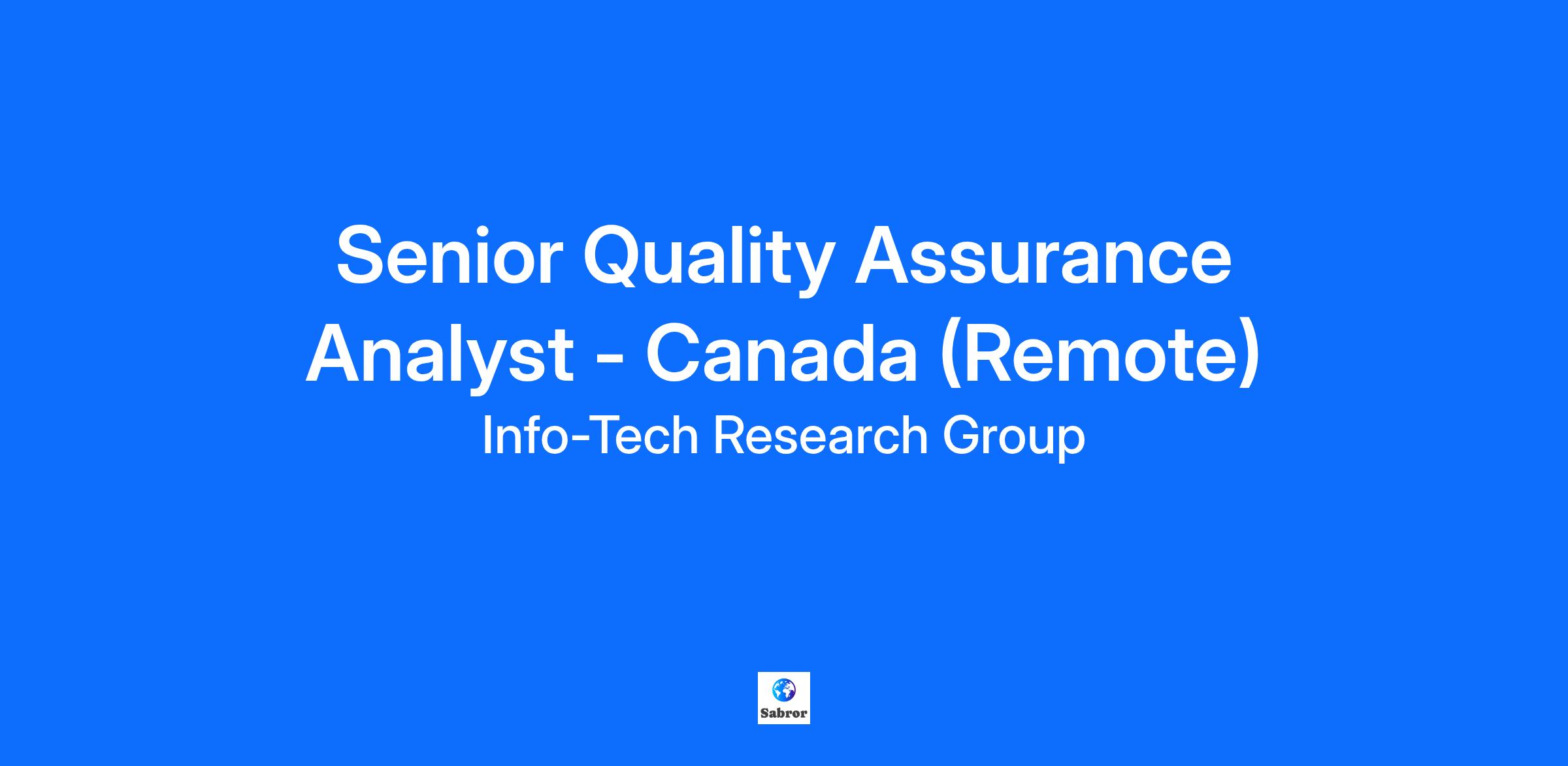 Info-Tech Research Group of companies is an equal opportunity employer committed to diversity and inclusion and does not discriminate on the basis of any legally protected status or characteristic including Minority/Female/Sexual Orientation/Gender Identity/Disability/Veteran and are pleased to consider all qualified applicants. To that end, upon request, ITRG will ensure, to the extent possible, that accommodation be made available to applicants throughout the recruitment and hiring process.