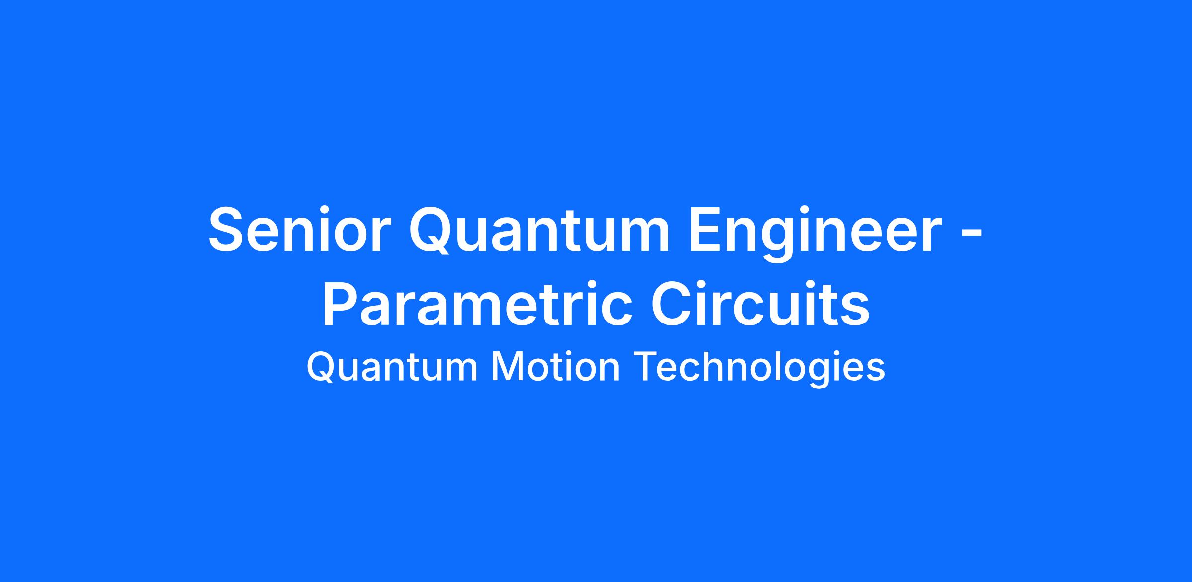 Senior Quantum Engineer - Parametric Circuits
