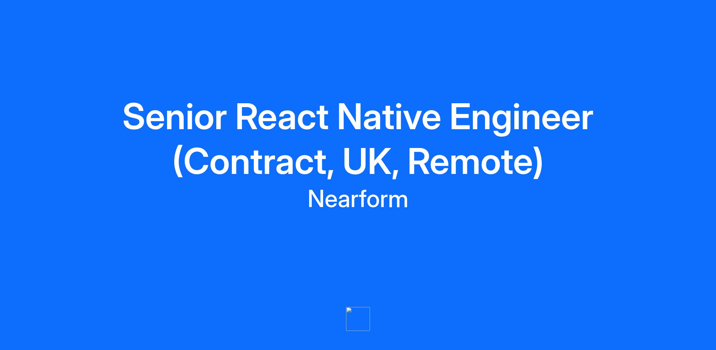 Senior React Native Engineer (Contract, UK, Remote) This is an initial 6 month contract, remote opportunity for those based in the UK. About Nearform Nearform is an independent team of data & AI experts, engineers, and designers who build intelligent digital solutions and capability at pace. We create AI-enabled solutions that enhance digital experiences, empower developers, and deliver measurable results. In these ways, we partner with ambitious enterprises to deliver enduring impact. Our deep expertise in solving the world’s most complex digital problems, along with our collaborative, people-first approach, enables enterprises to build breakthrough products and modernise legacy systems by unleashing the power of AI. Today, our team of 500 experts in 20+ countries is trusted by leading enterprises including Lululemon, Puma, Sun Life, Starbucks, Travelex, Virgin Media 02, and Walmart. As part of our Engineering function, you will work closely with clients to translate complex business requirements into innovative digital products. Whether you are a Senior Engineer, Tech Lead, or DevOps Engineer, you will collaborate with distributed teams, leveraging cutting-edge technologies to build secure, high-performance applications. Our Nearform engineers are known for building high quality, scalable solutions that solve real world problems. About the Senior React Native Engineer role As a Senior Engineer at Nearform your main task will be designing & building applications using JavaScript. However as you’ll likely work on a variety of projects your responsibilities may also include: Supporting component design, development and maintenance and taking responsibility for personal technical quality standards within the project team. Assisting with defining structured practices, especially in source code management, building and deployment. Designing and implementing data storage solutions. Optimising performance in applications for maximum speed and scalability. Getting feedback from users and clients, and building solutions for them. Assisting with the analysis of client requirements. Working with and supporting Technical Leaders in project execution and timely delivery. Collaborating with client teams. What we are looking for in this person Significant experience delivering at a Senior Engineer level. Our Seniors typically have at least 6 years’ commercial experience. Practical experience of delivering in an agile environment. Practical experience and knowledge of developing real-world solutions. Deep knowledge of the JavaScript language. Deep understanding of JavaScript frameworks, specifically React Native Deep understanding of versioning control tools - e.g. Git. Testing experience and familiarity with testing tools at all levels, unit, integration and end to end testing. Practical and real world experience working with databases and cloud environments. Experience with automation, CI and CD. Experience building software collaboratively using pull requests and code reviews Excellent communication and collaboration skills. Professional proficiency in English. Our Interview Process Talent Call (30 mins via Zoom) An introductory conversation with a member of our Talent Team to learn more about your background, experience, and career goals. We'll also provide a high-level overview of Nearform and answer any questions you may have. This step helps us assess initial alignment. Technical Assessment (1 hour via Zoom) A live coding challenge with one of our trained interviewers. You'll be asked to build a working solution to a problem via screen sharing, demonstrating your JavaScript expertise, problem-solving ability, and coding best practices in a real-time environment. Hiring Manager Interview (45 mins via Zoom) A conversation with a Hiring Manager focused on your approach to teamwork, client collaboration, and problem-solving in an enterprise development setting. We'll also share more details about Nearform and the potential projects you may join. There may also be an additional interview with the client depending on the project. Ready to Join Us? If you're passionate about building high-quality applications, solving complex challenges, and driving innovation in enterprise development, we’d love to hear from you. Apply now via our careers page at Nearform and be part of a team that values technical excellence, collaboration, and continuous learning. Nearform is committed to shaping a better world in all that we do. Our global team is built based on respect, inclusivity, diversity and excellence. If you require any adjustments to the interview process as part of your application, please let someone from our Talent Team know so they can help.